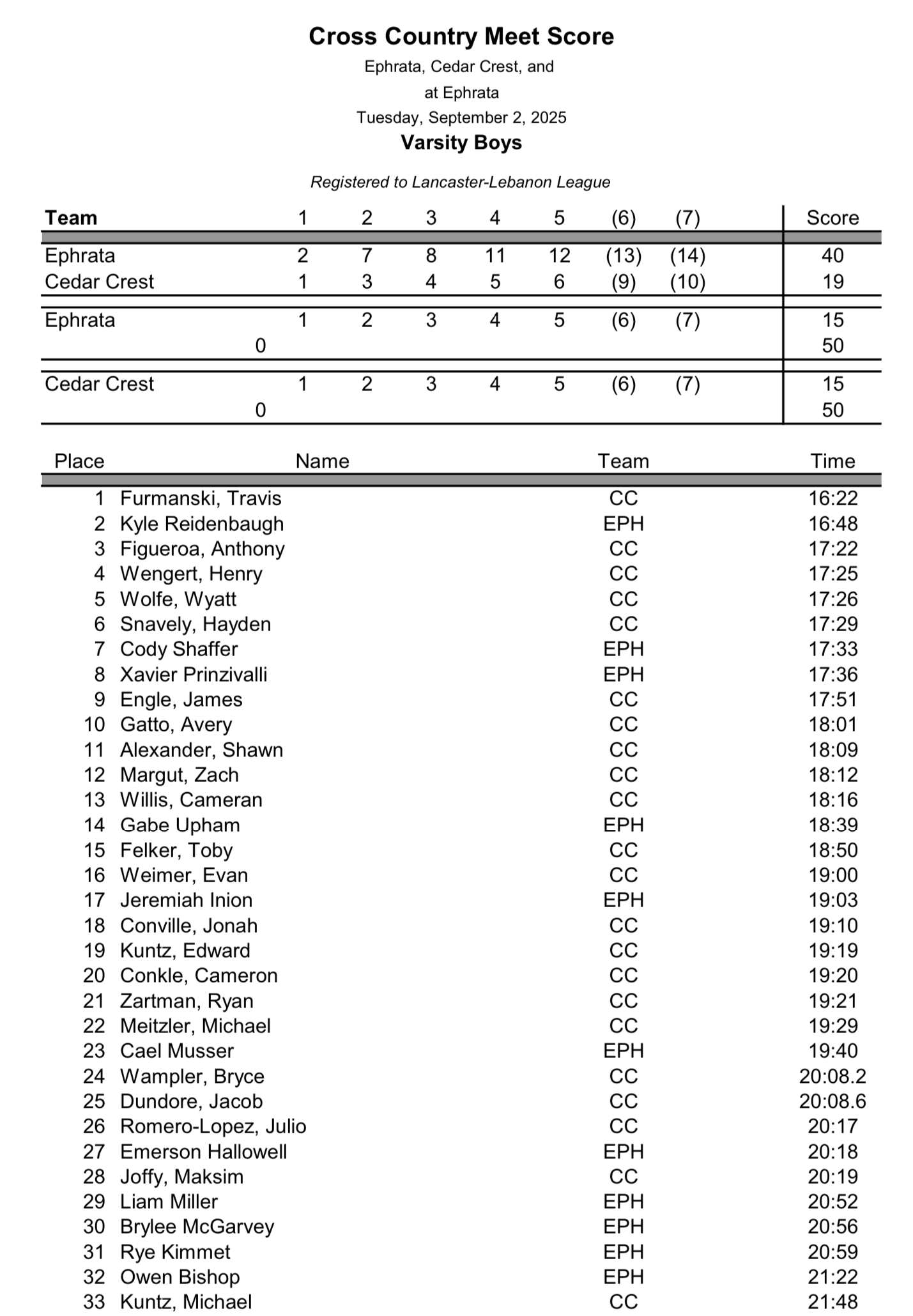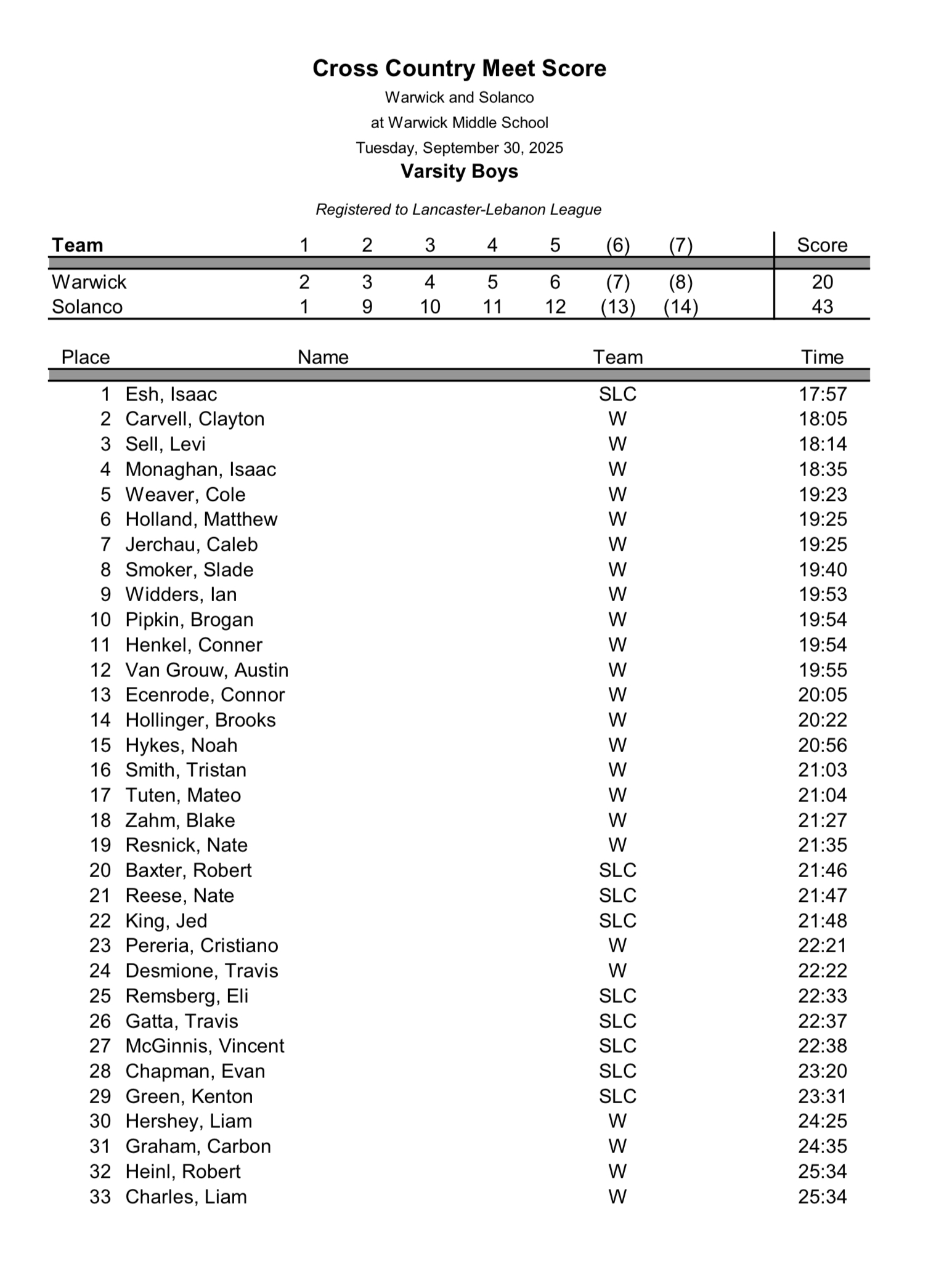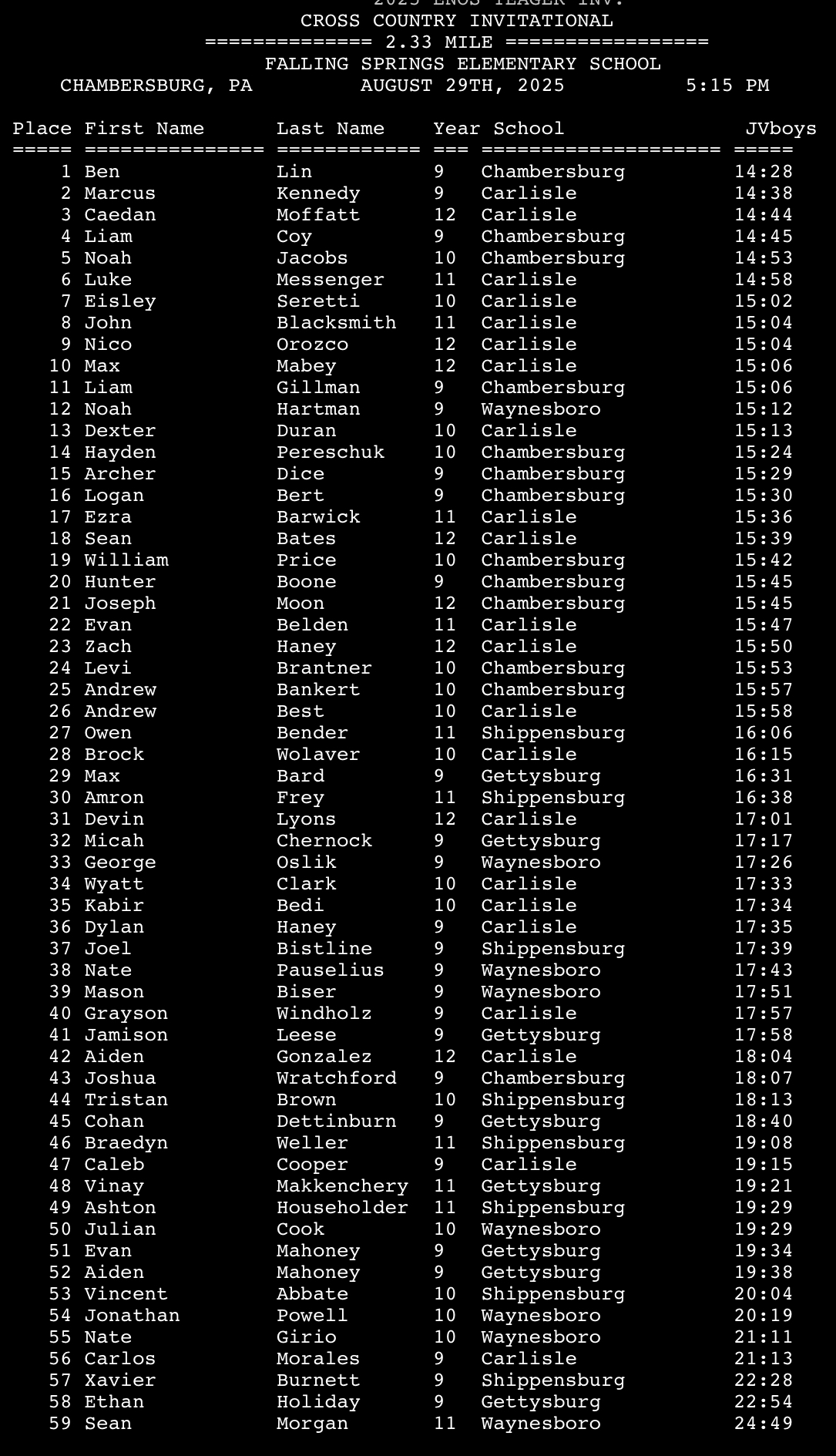LVC Invitational – Results