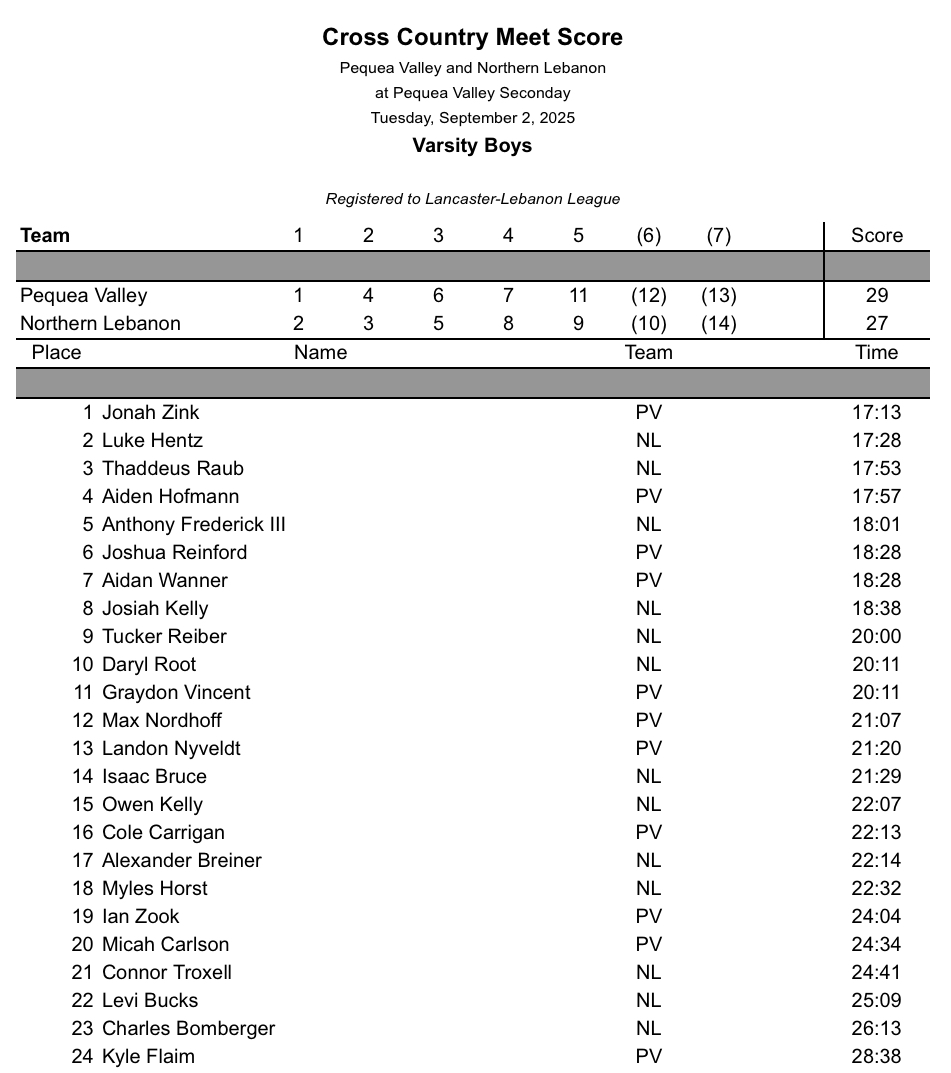 Northern Lebanon @ Pequea Valley – Girls Boys