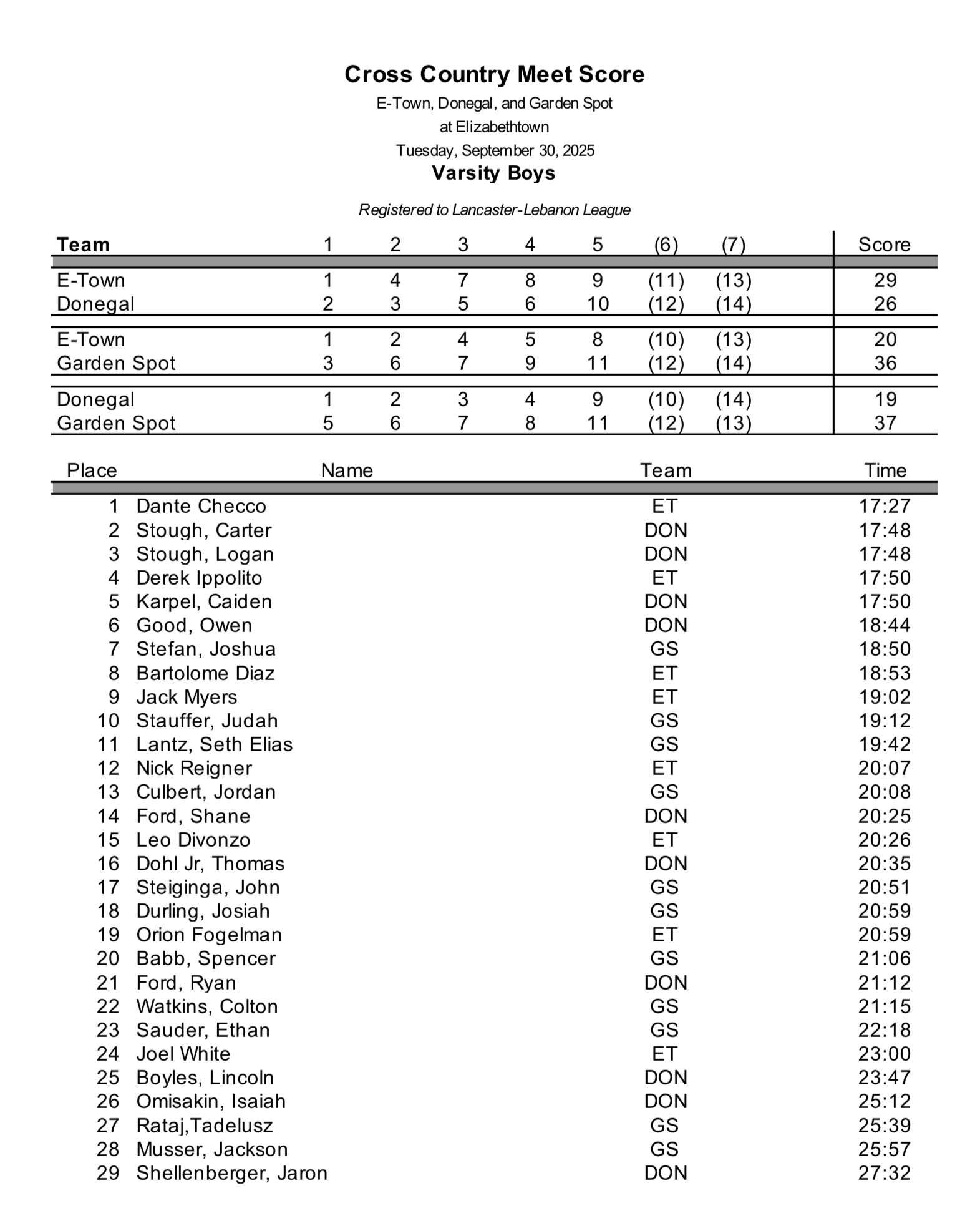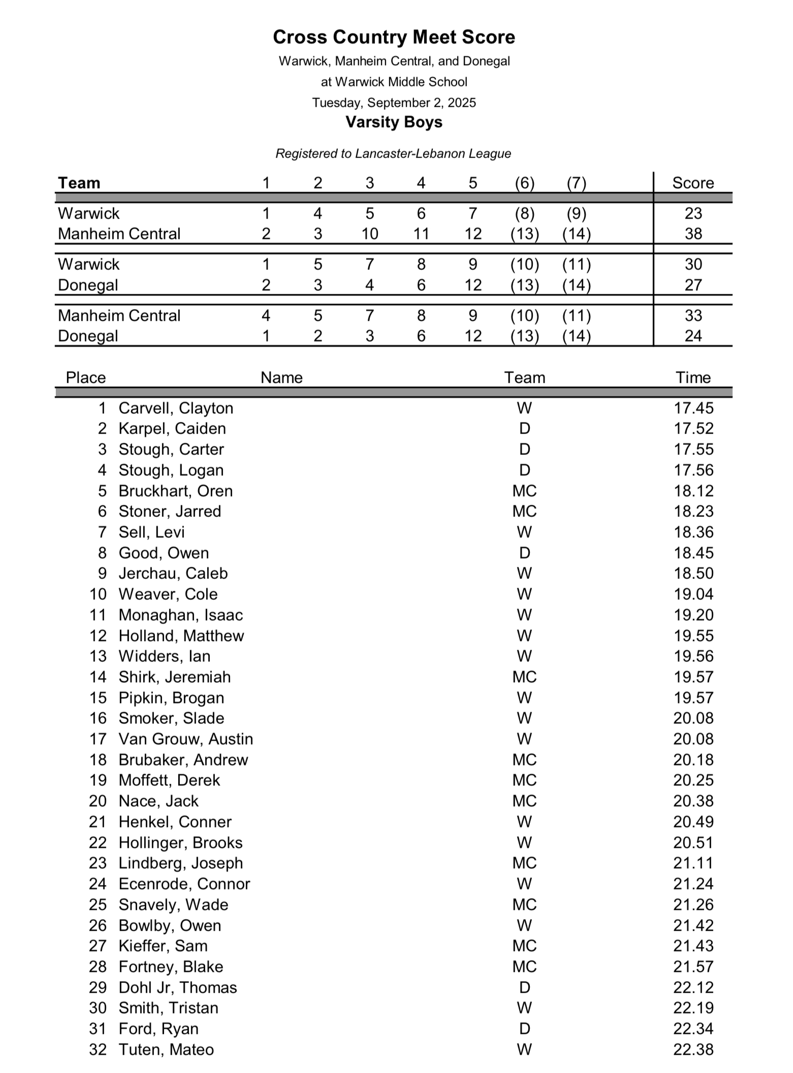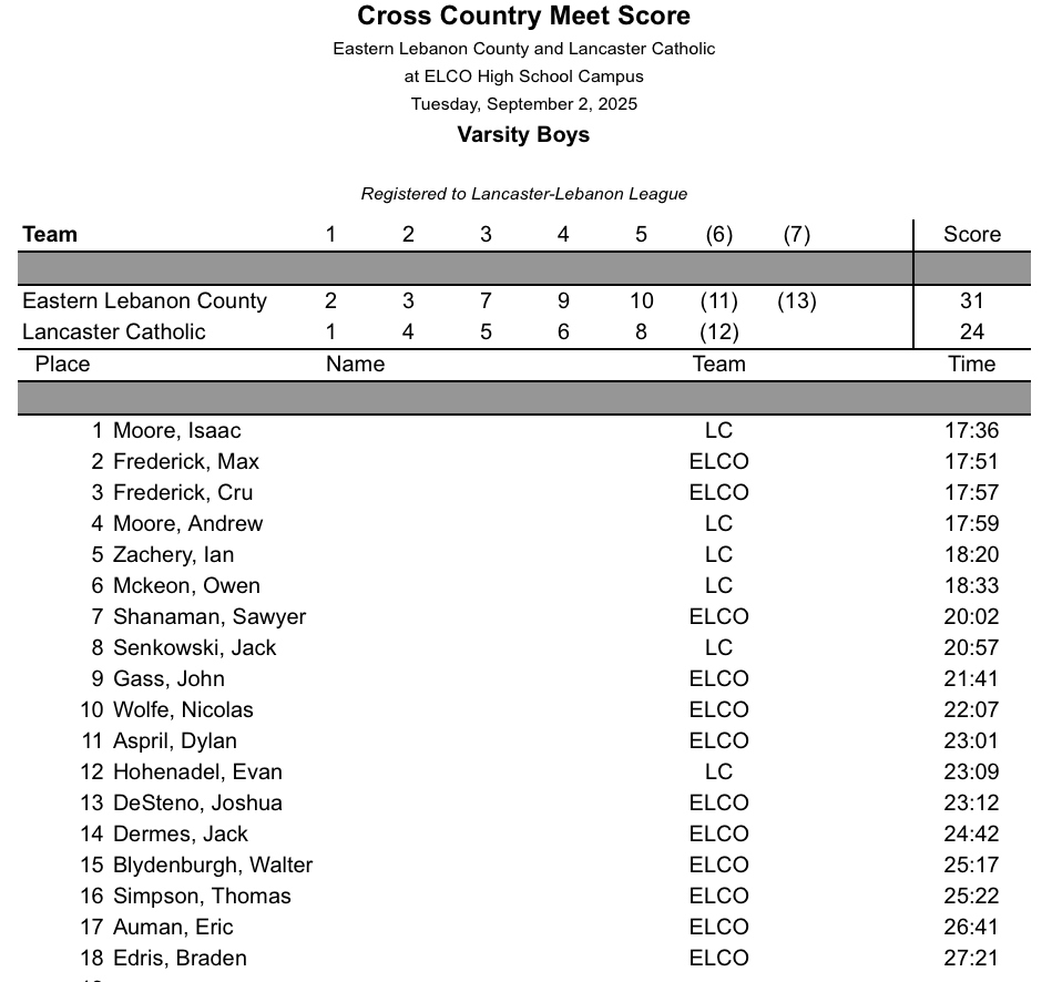 Mechanicsburg @ Lower Dauphin – Results