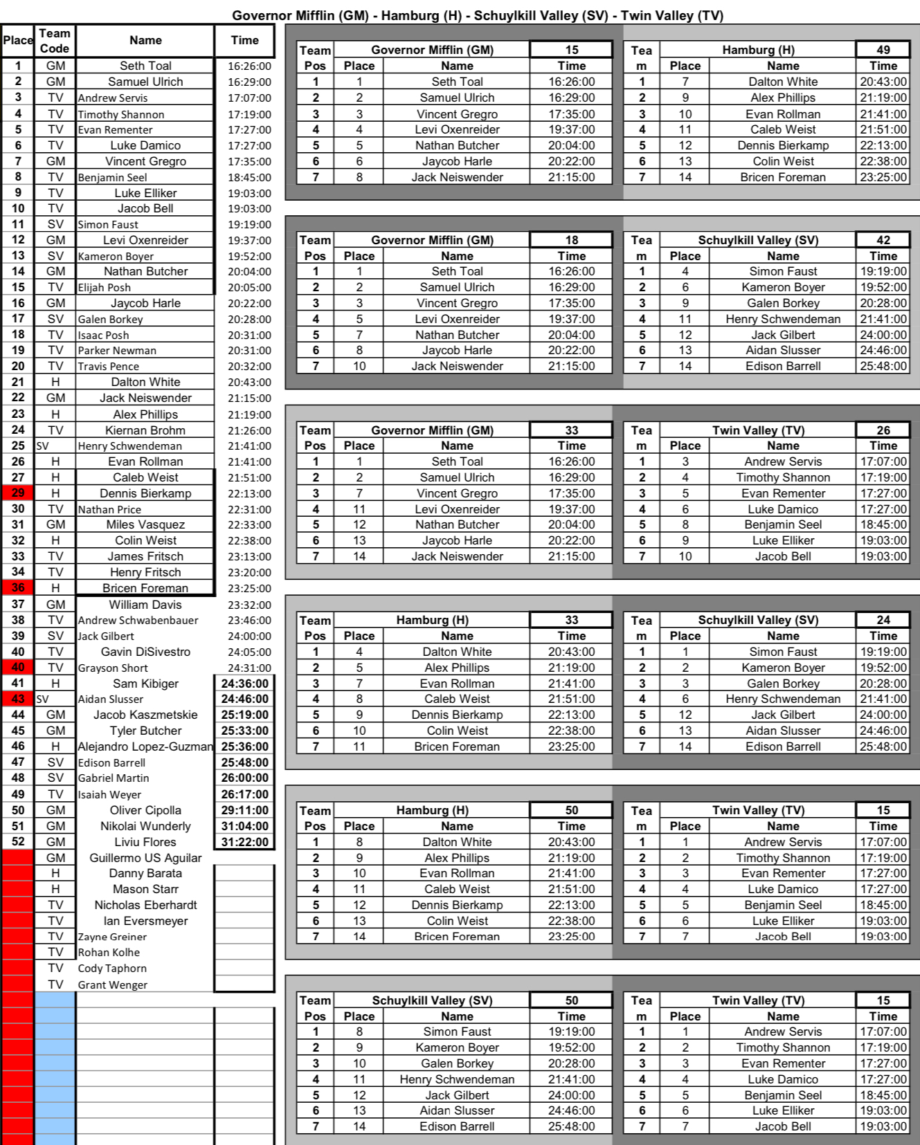 Governor Mifflin, Hamburg, Twin Valley @ Schuylkill Valley – Girls Boys