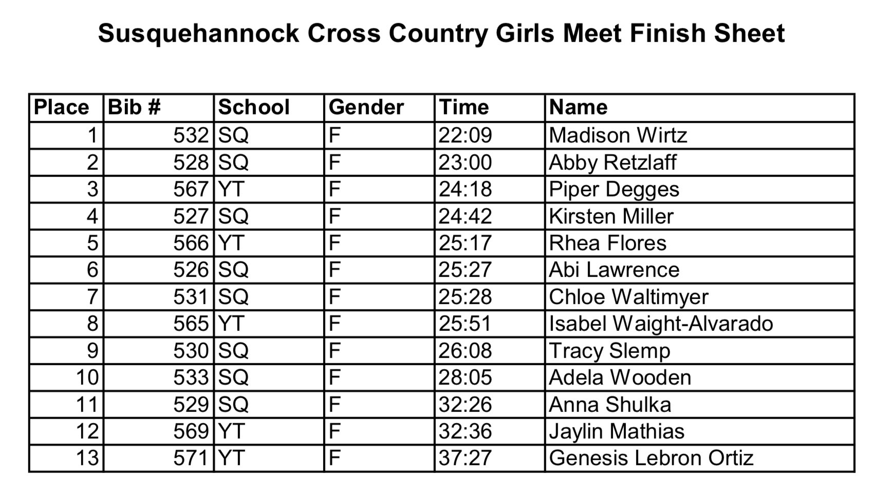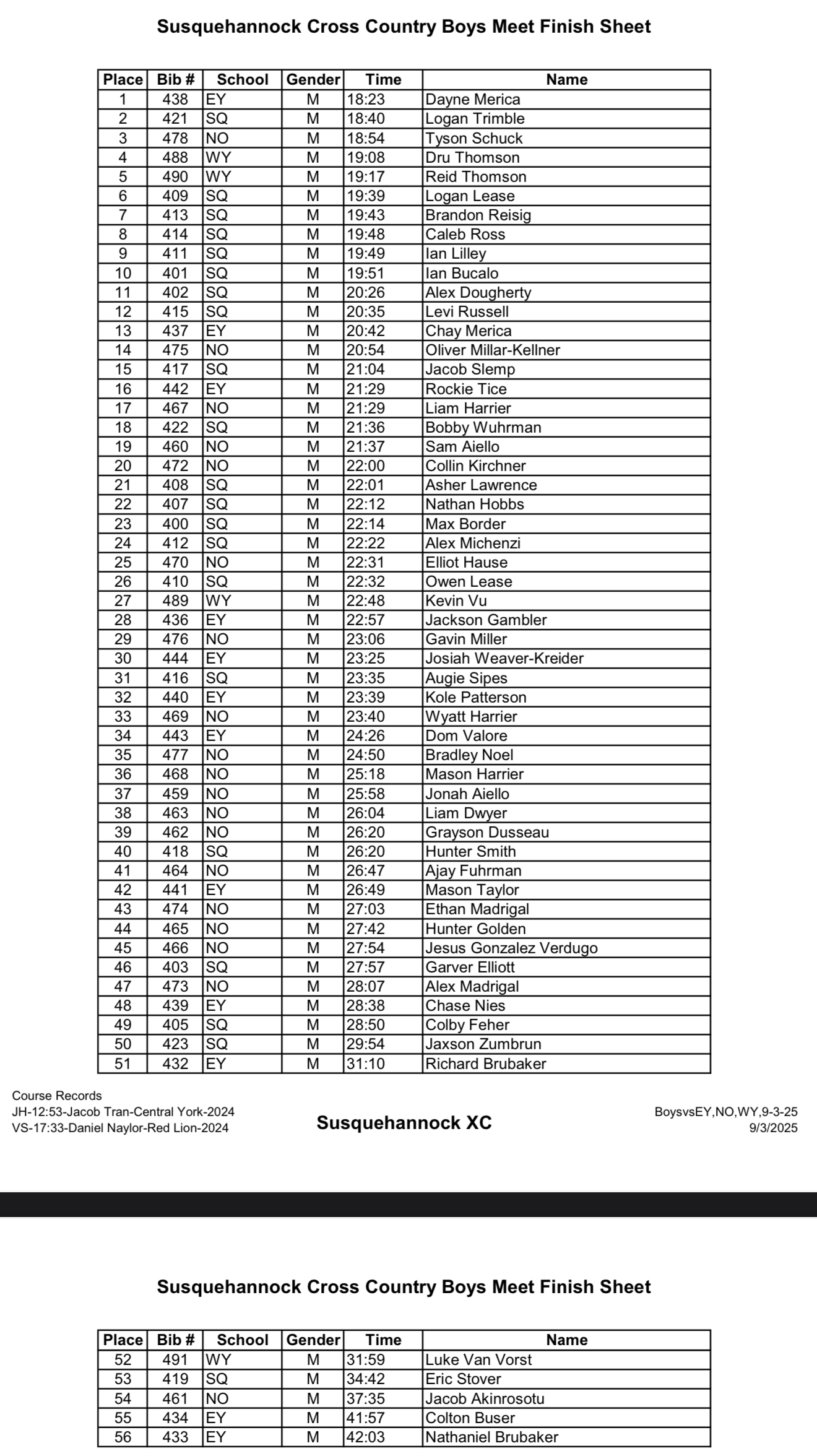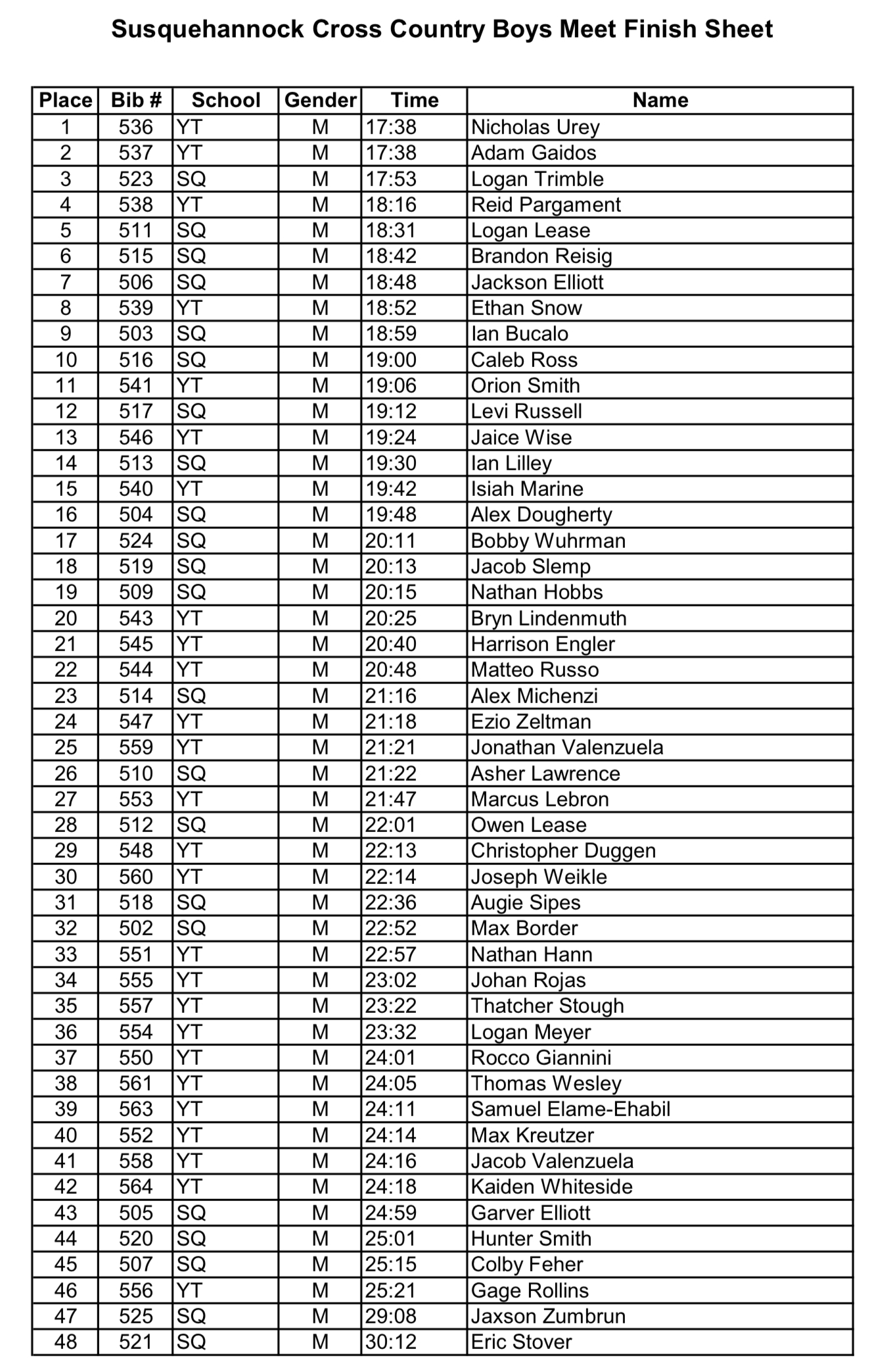 Susquehannock Invitational (YAIAA MS Champs) – Results