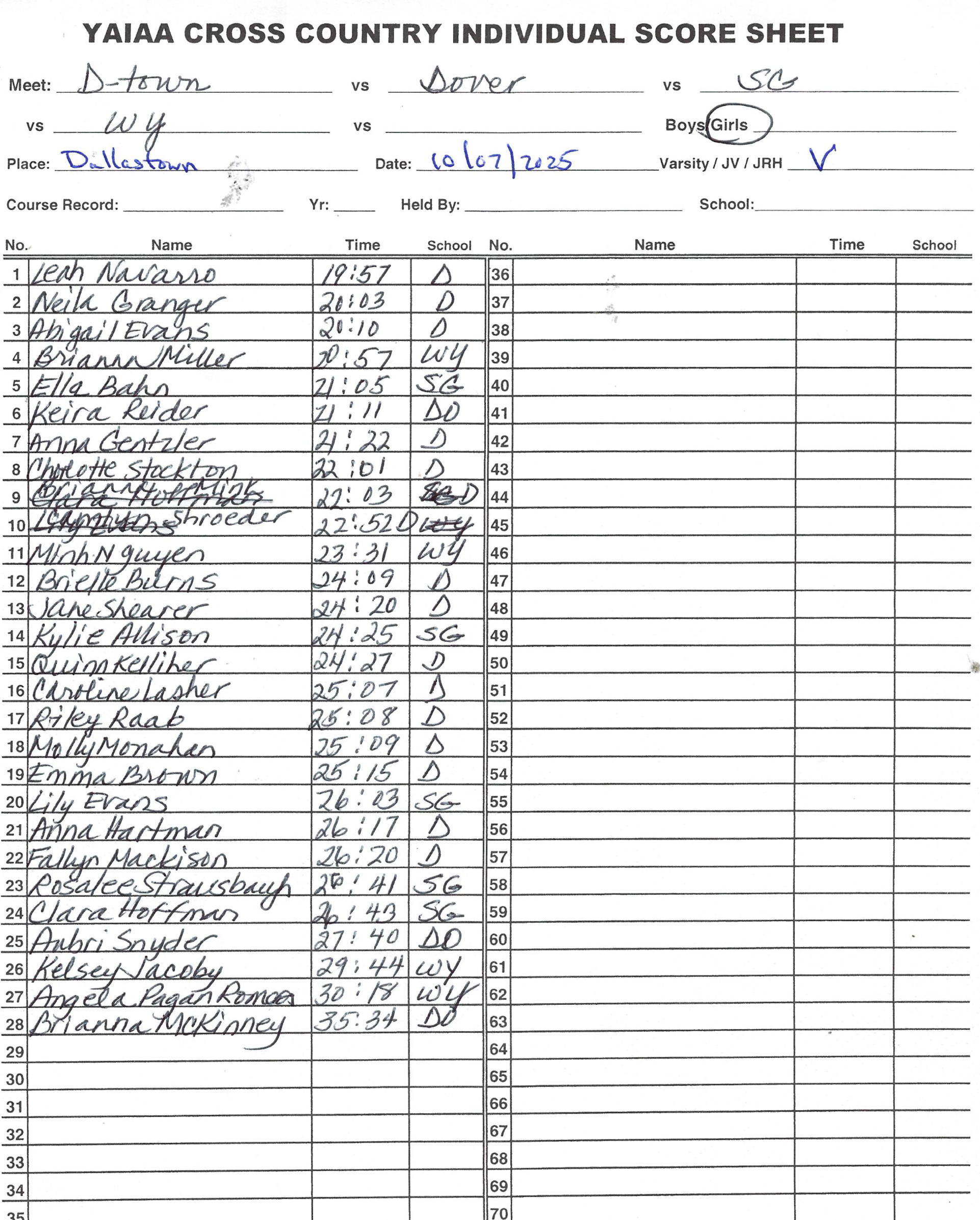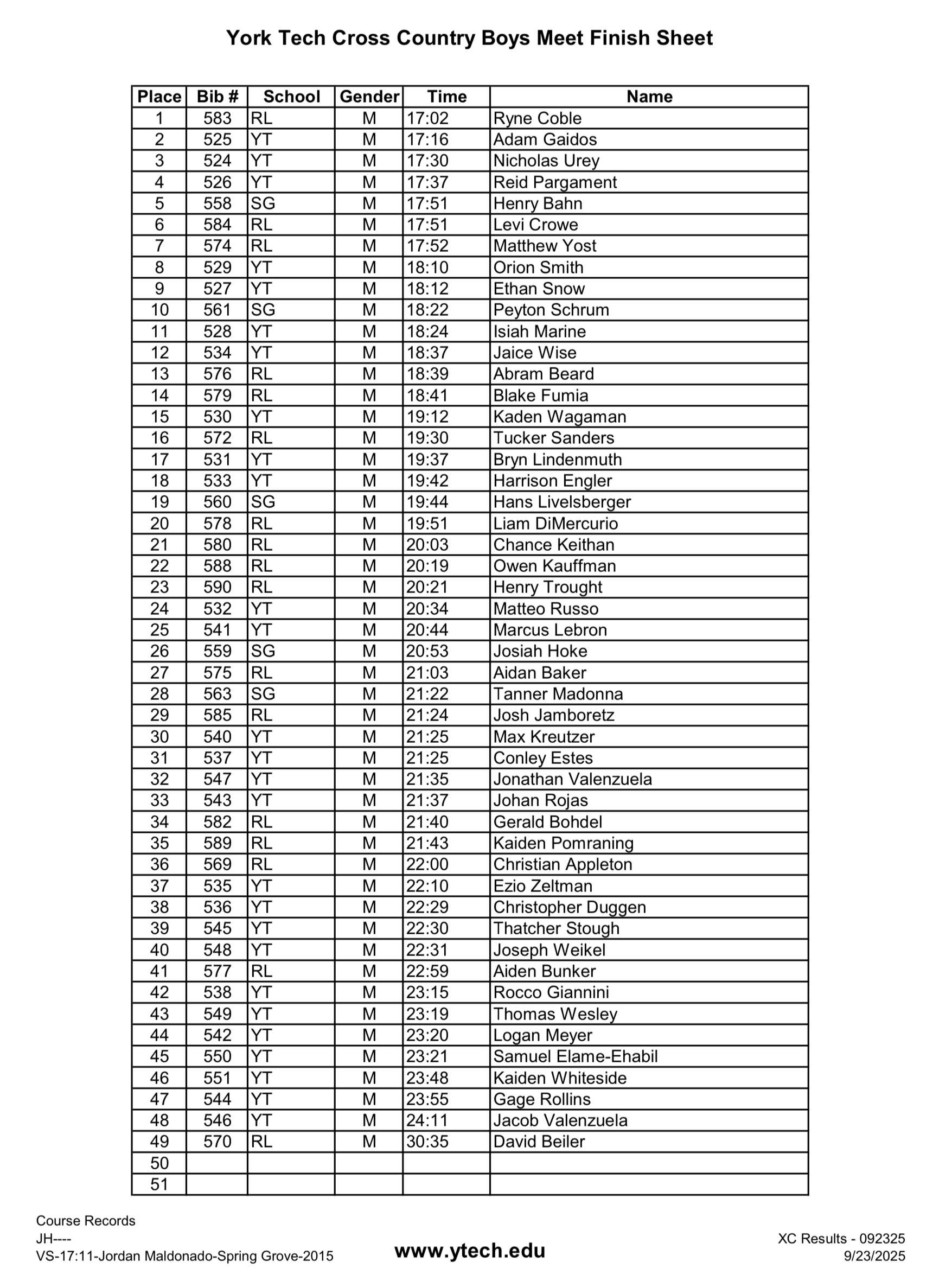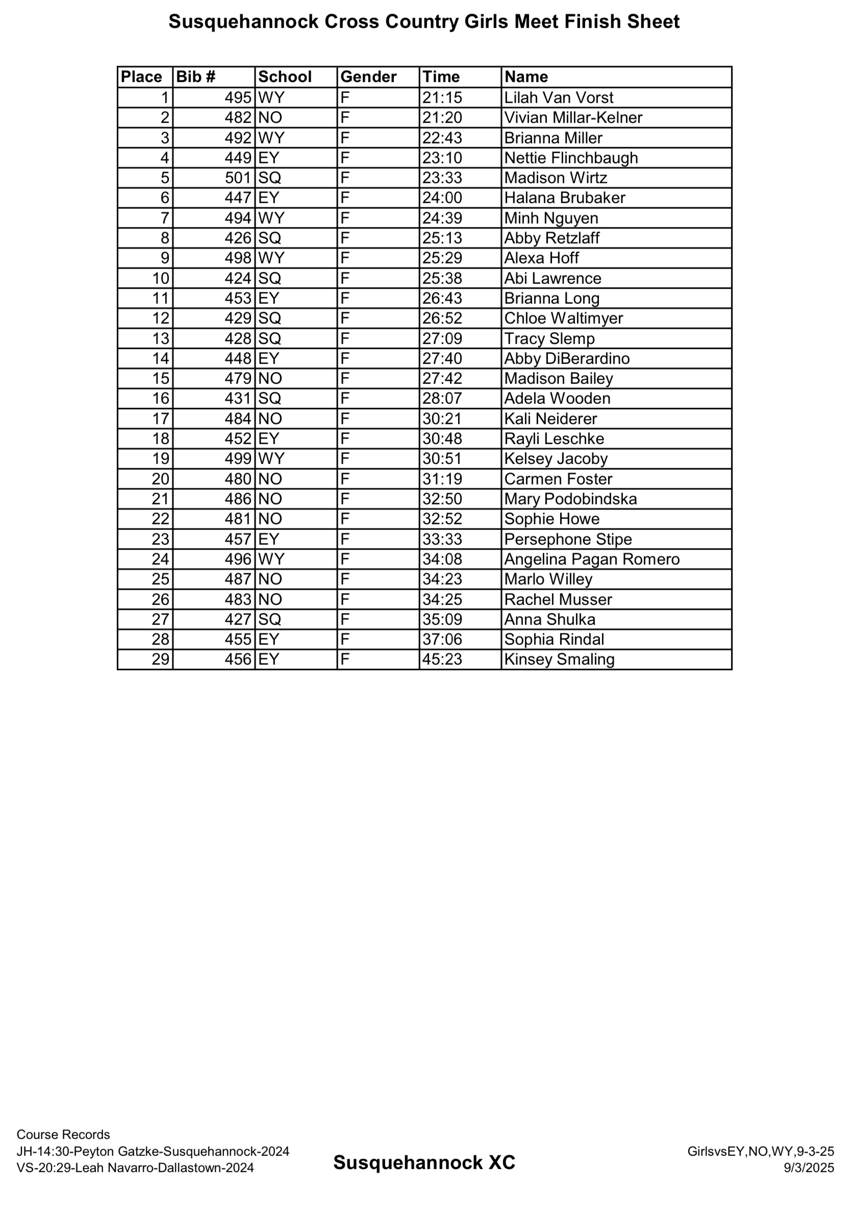 Susquehannock Invitational (YAIAA MS Champs) – Results