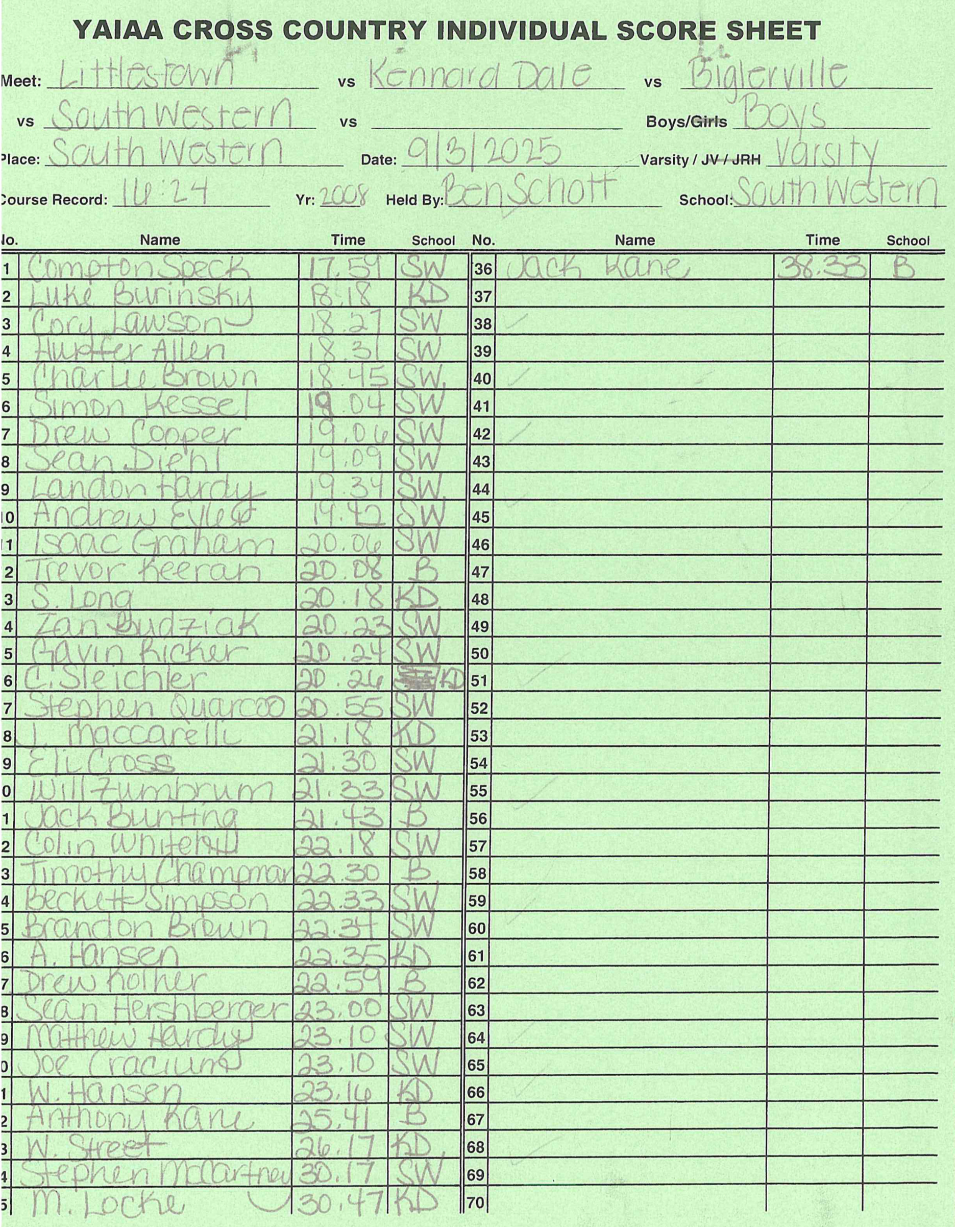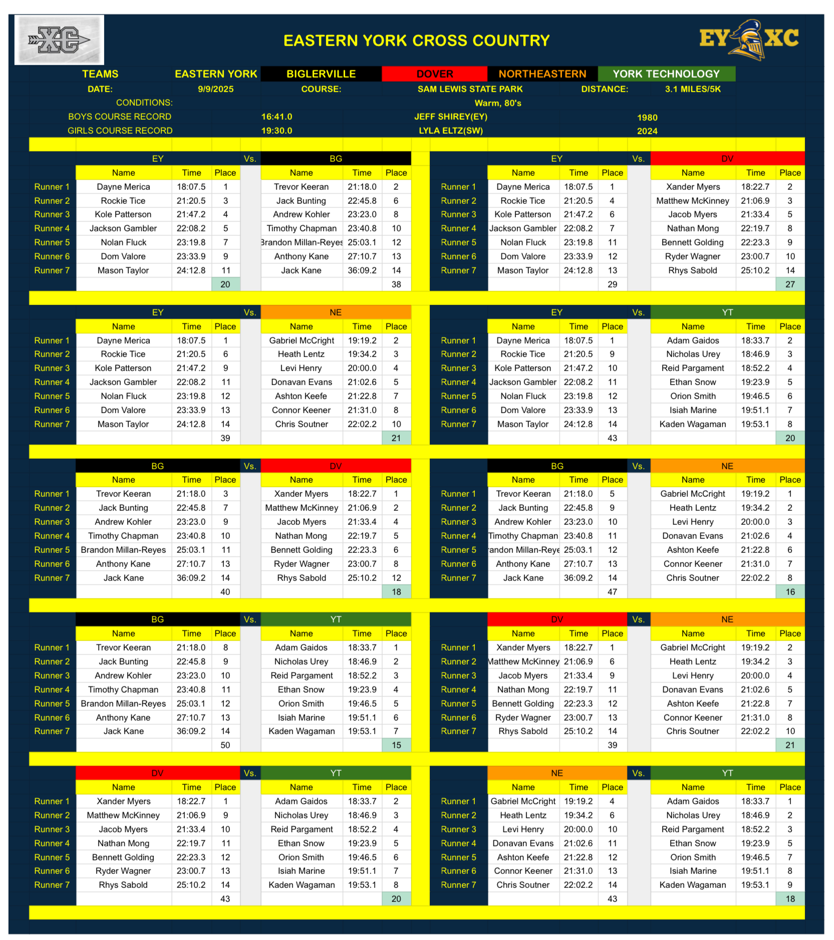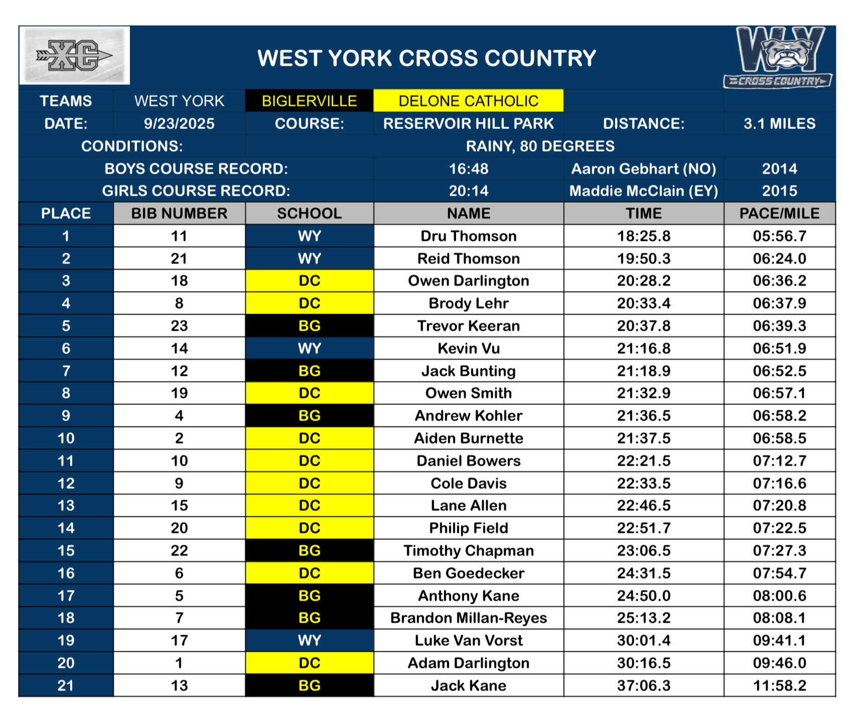 Biglerville, Fairfield, York Suburban @ John Rudy Park – Results