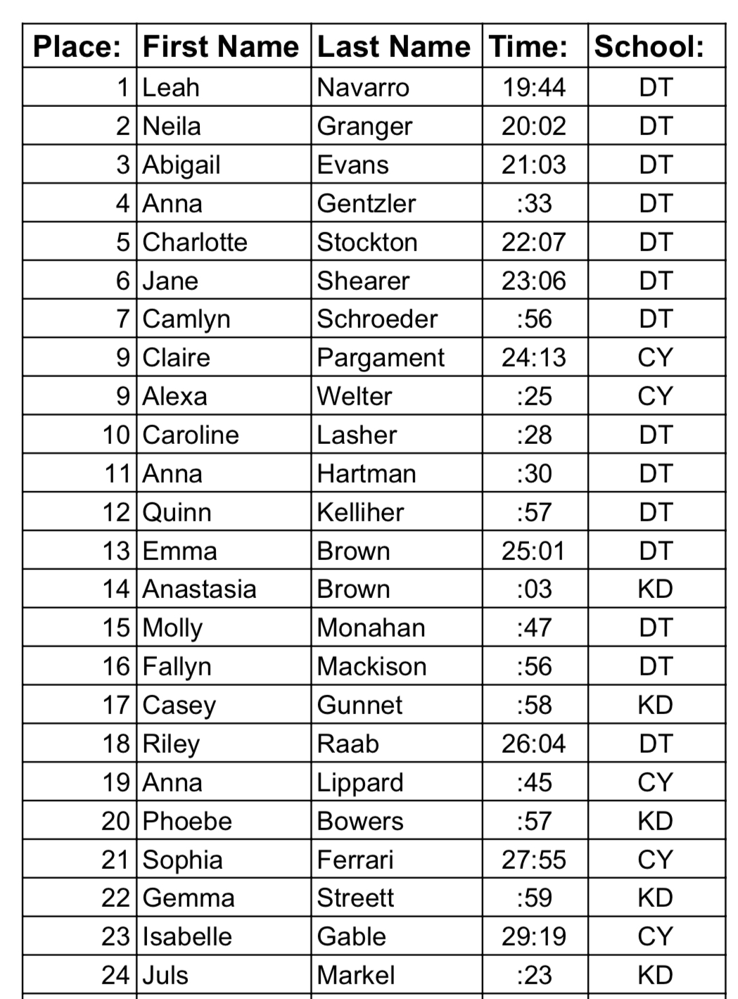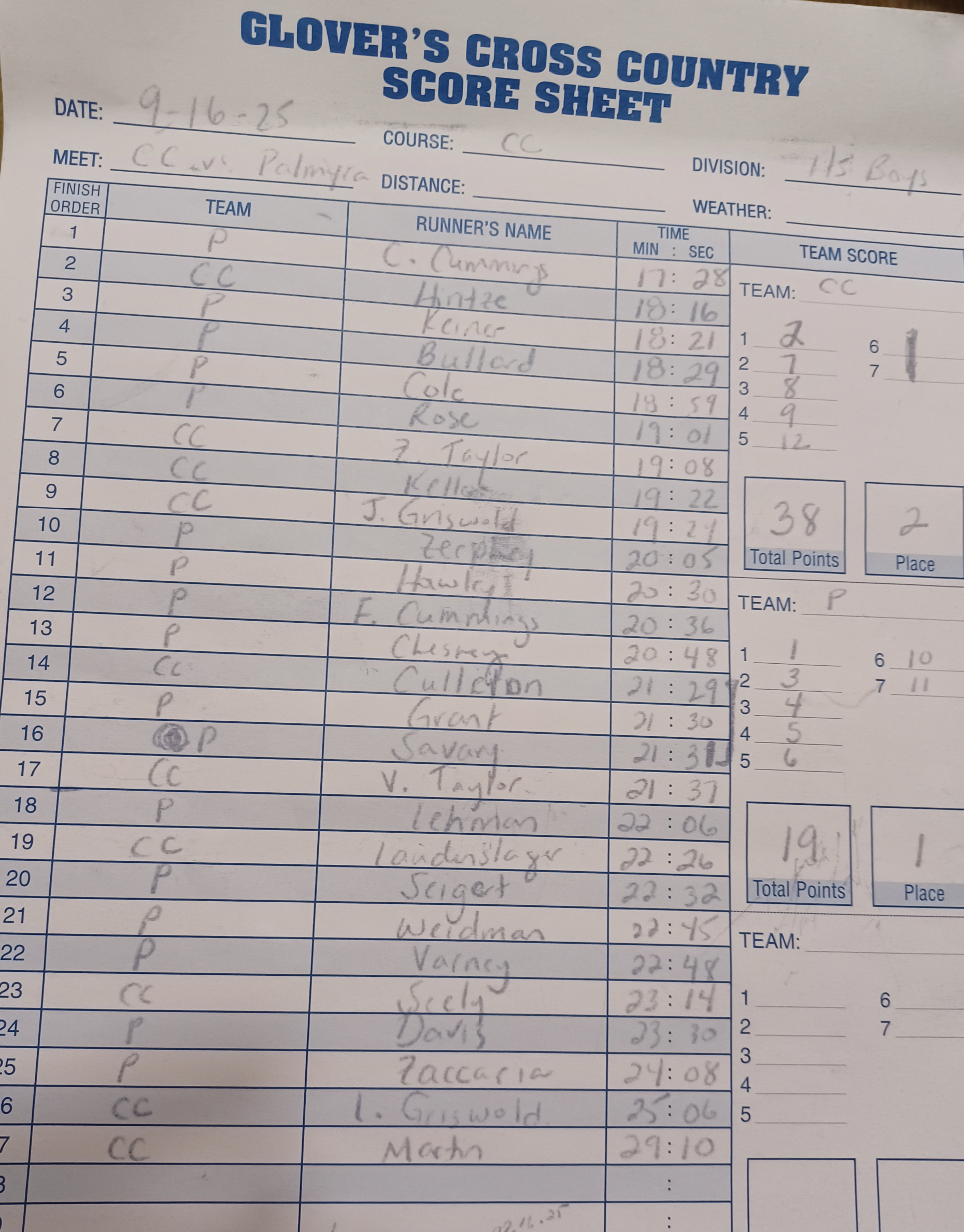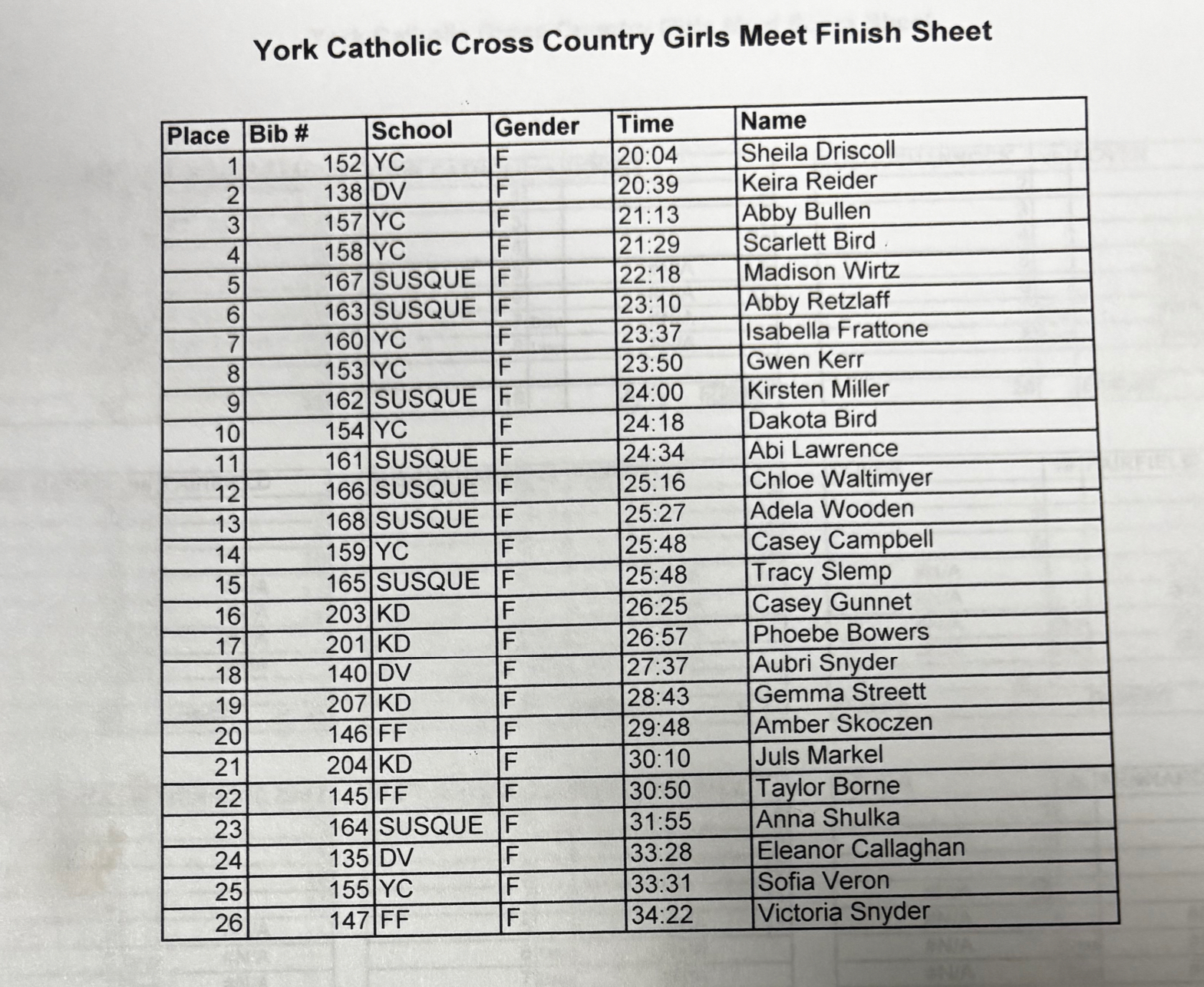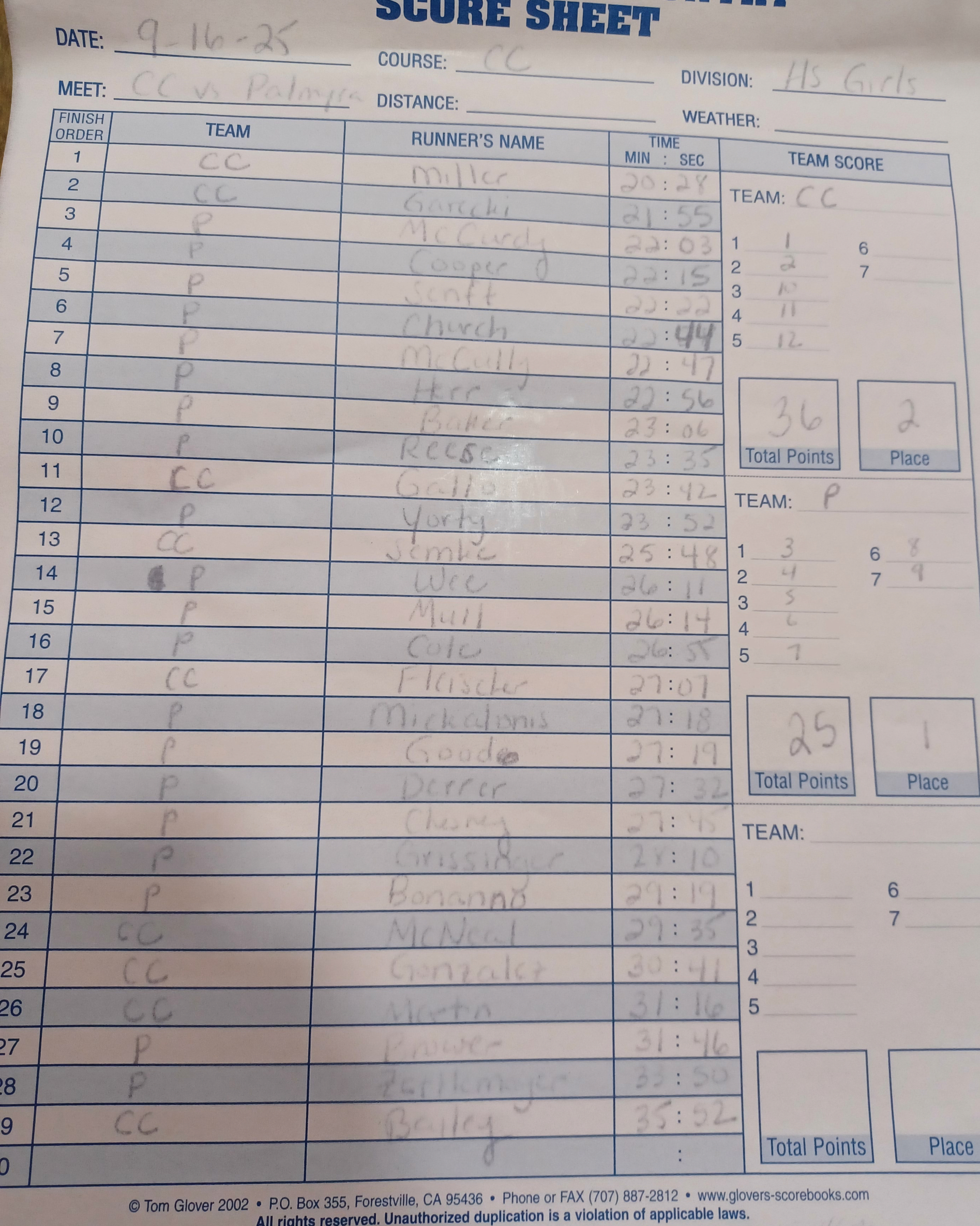 Please send all XC results to centralparunner@gmail.com for posting!