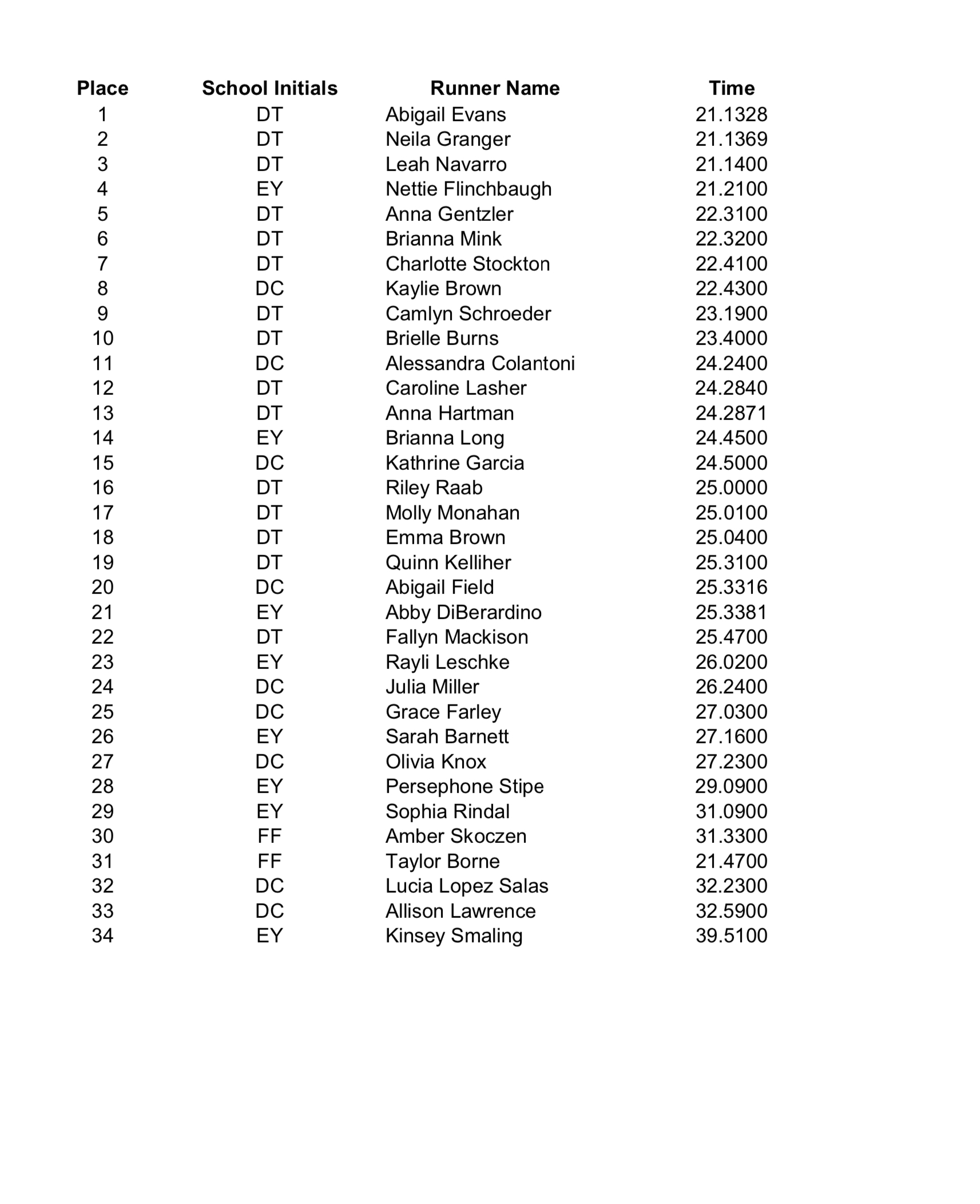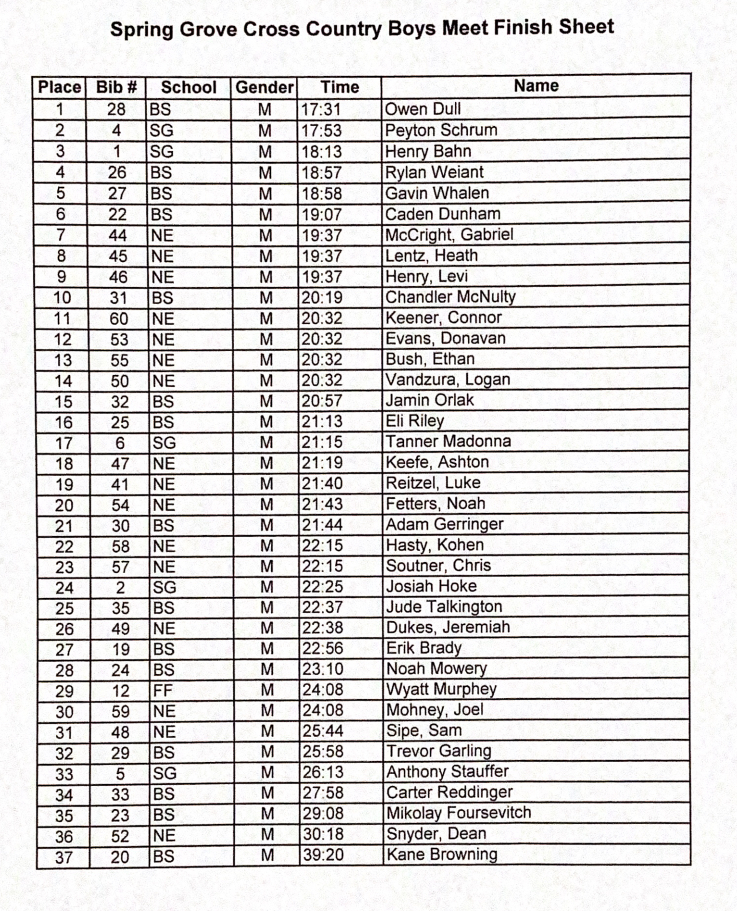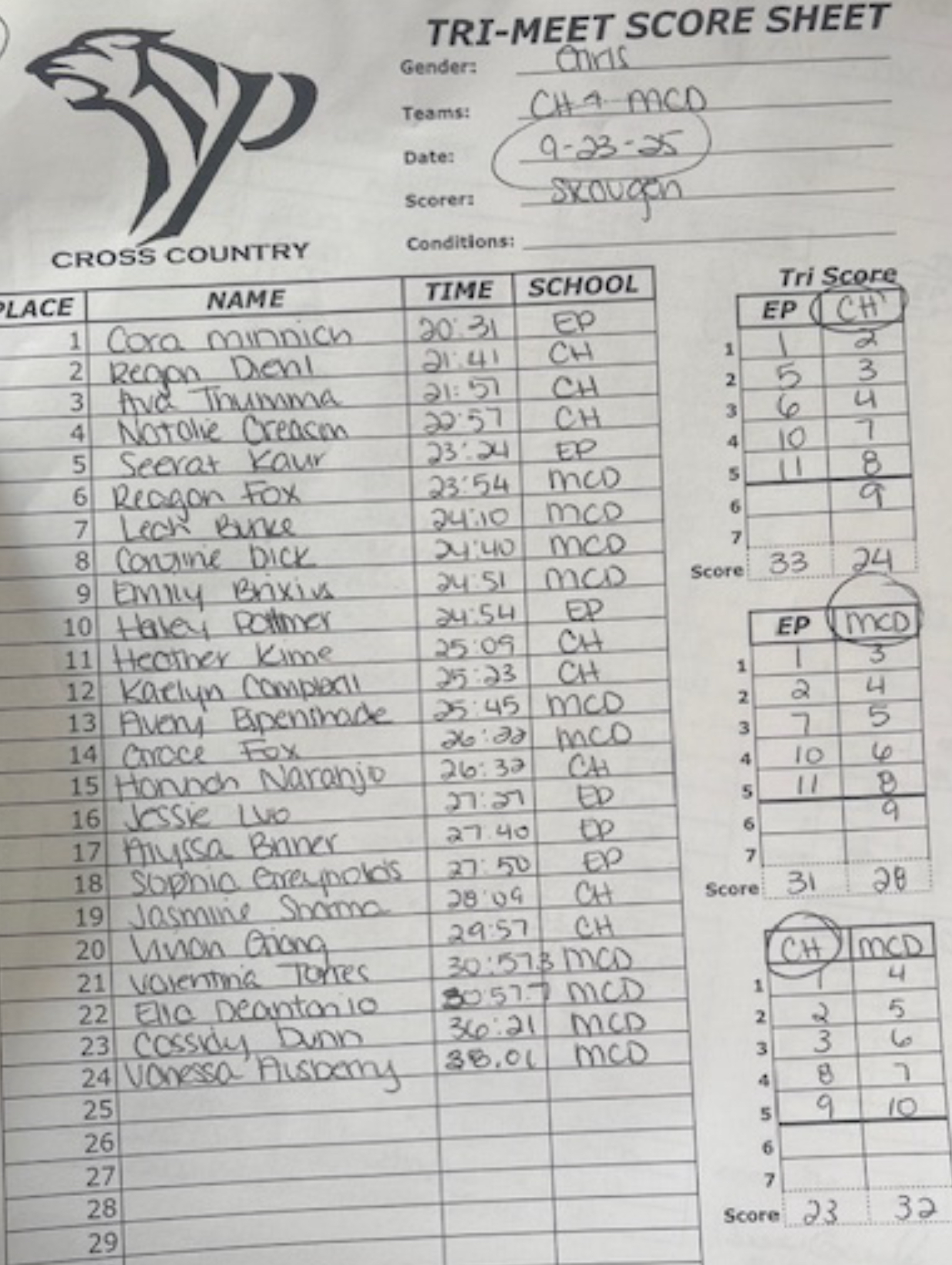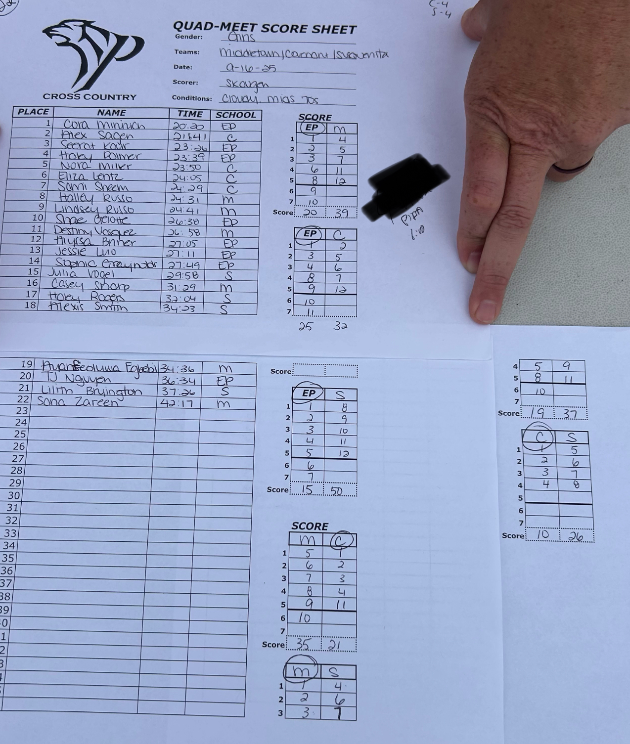 Please send all XC results to centralparunner@gmail.com for posting!