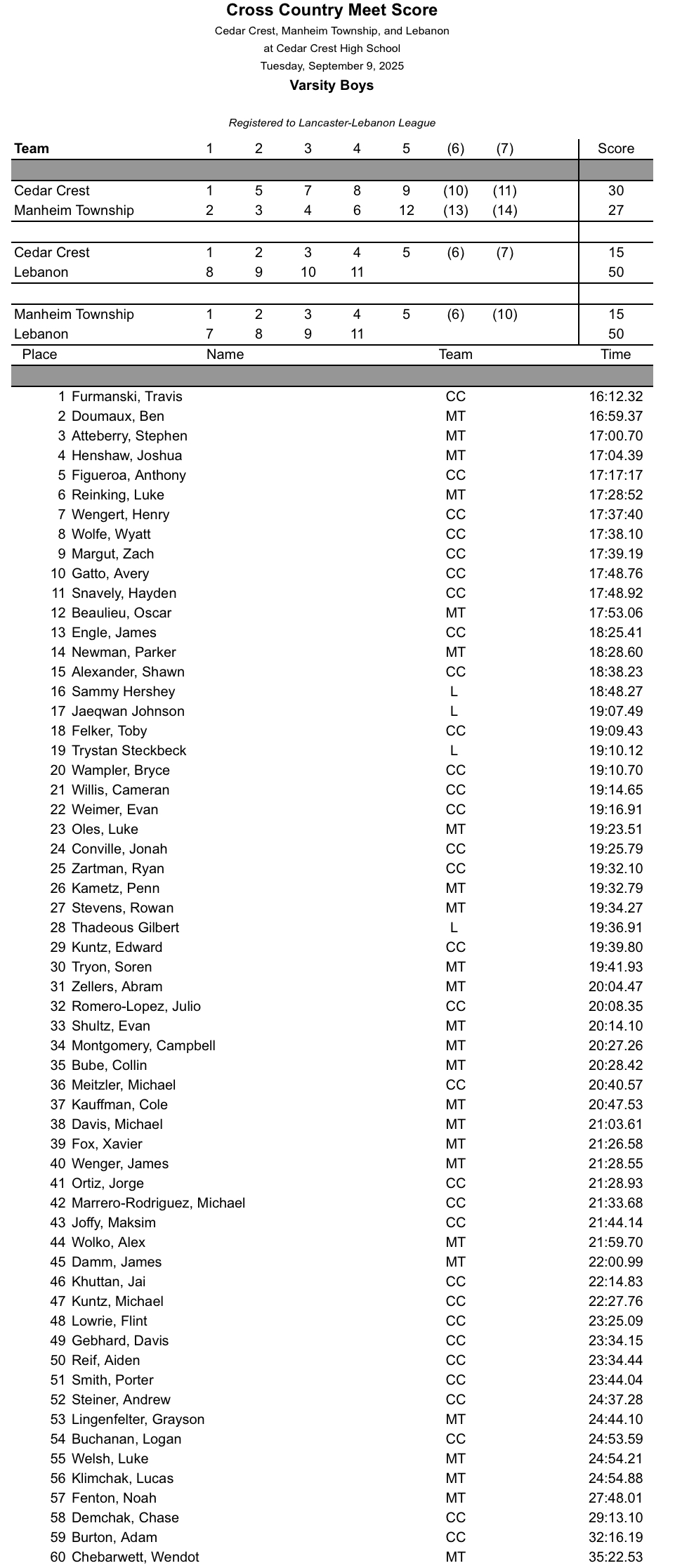 Lebanon and Manheim Township @ Cedar Crest – Girls Boys