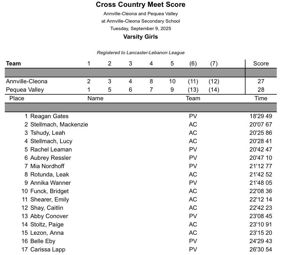 Pequea Valley @ Annville-Cleona – Girls Boys