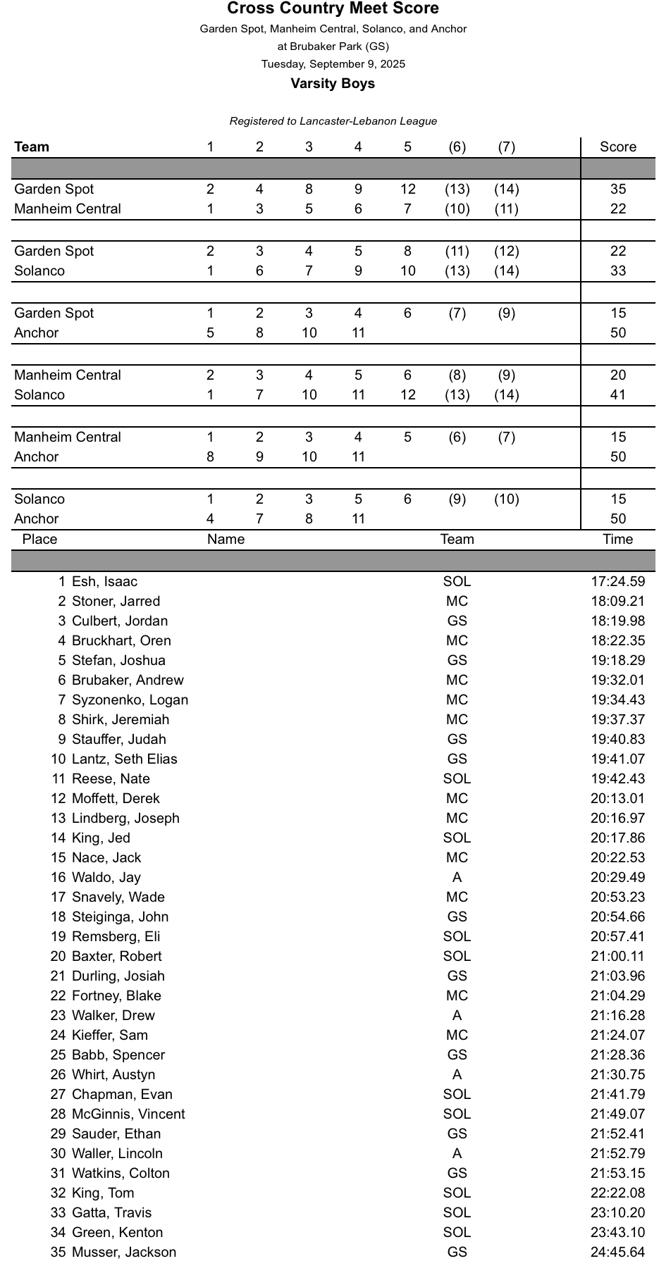 Anchor Christian, Manheim Central, Solanco @ Garden Spot – Girls Boys