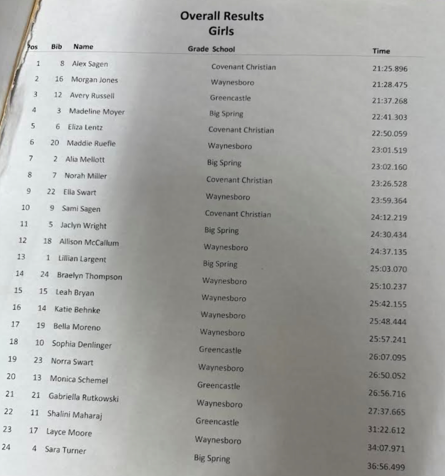 Covenant Christian, Greencastle-Antrim, Waynesboro @ Big Spring – Girls Boys