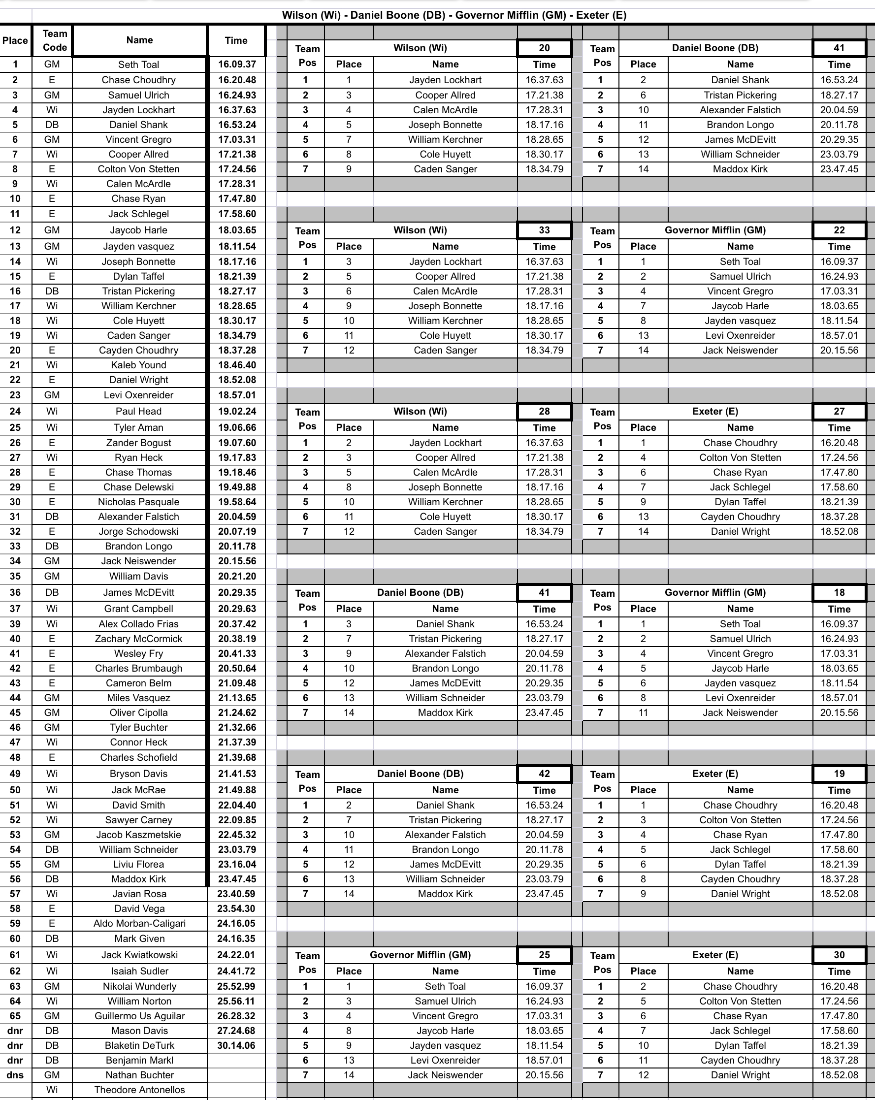 Daniel Boone, Exeter Township, Governor Mifflin @ Wilson – Girls Boys
