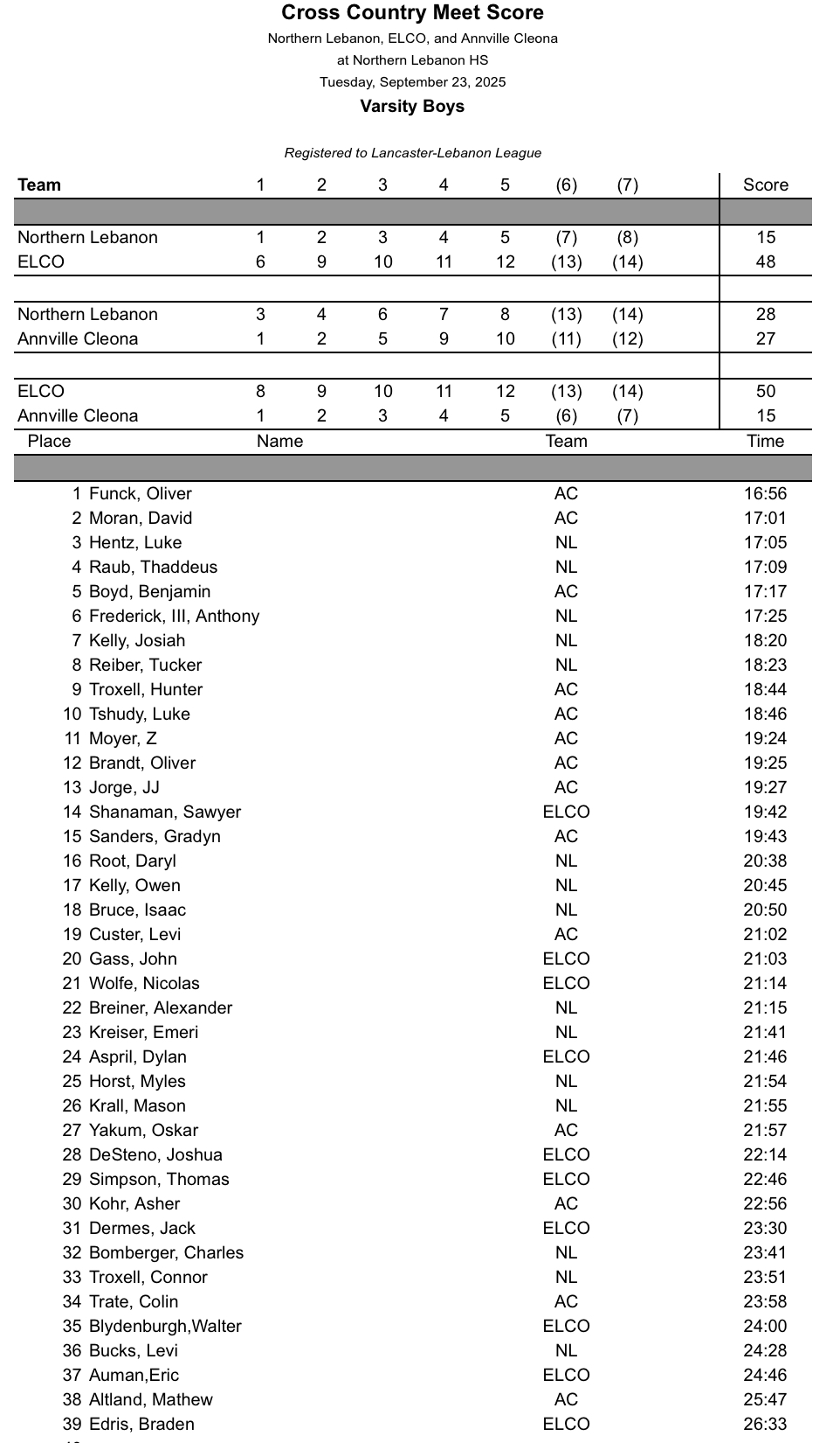 Annville-Cleona and ELCO @ Northern Lebanon – Girls Boys