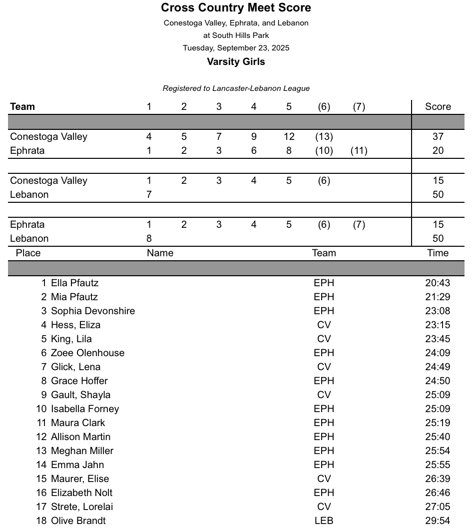 Conestoga Valley and Ephrata @ Lebanon – Girls Boys