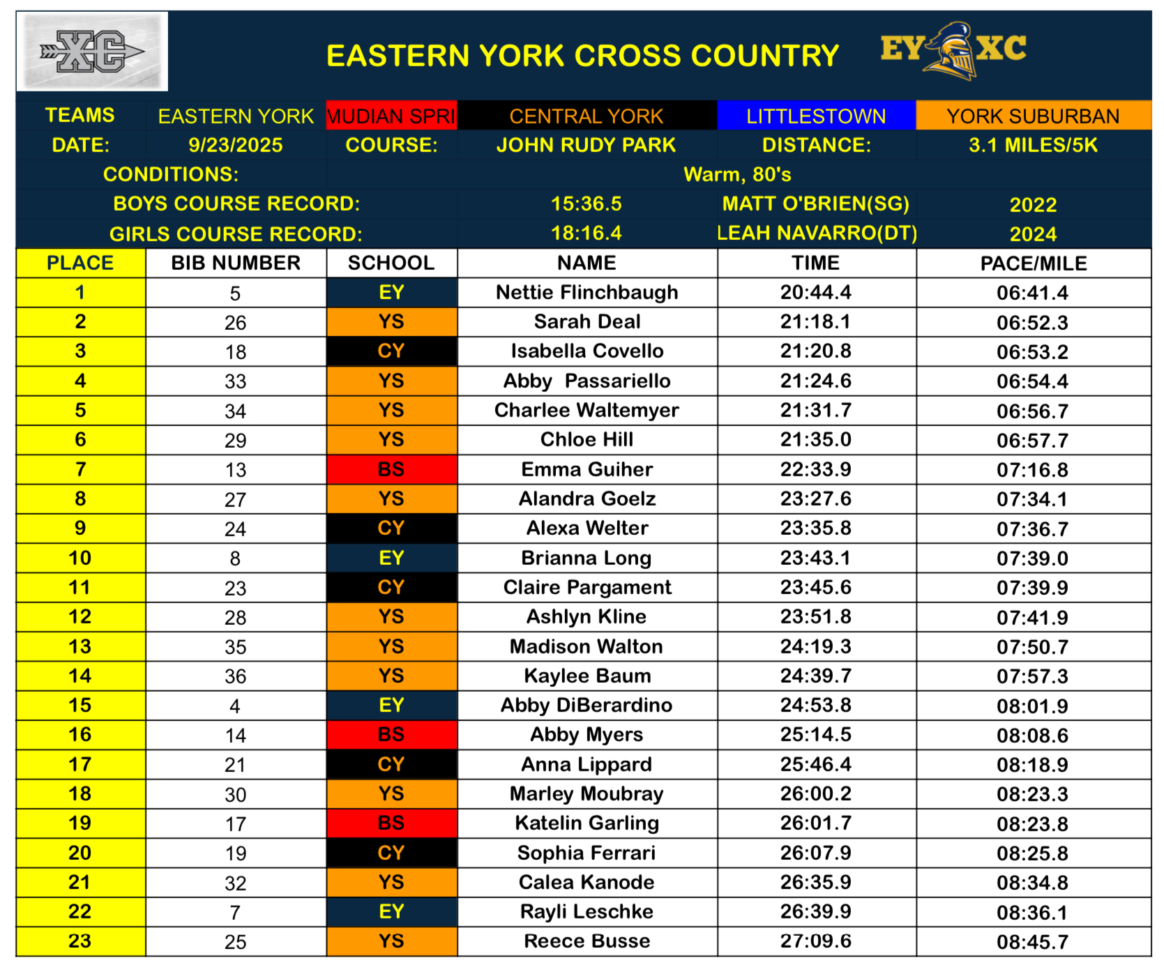 Bermudian Springs, Central York, Eastern York, Littlestown, York Suburban @ John Rudy Park – Girls Boys