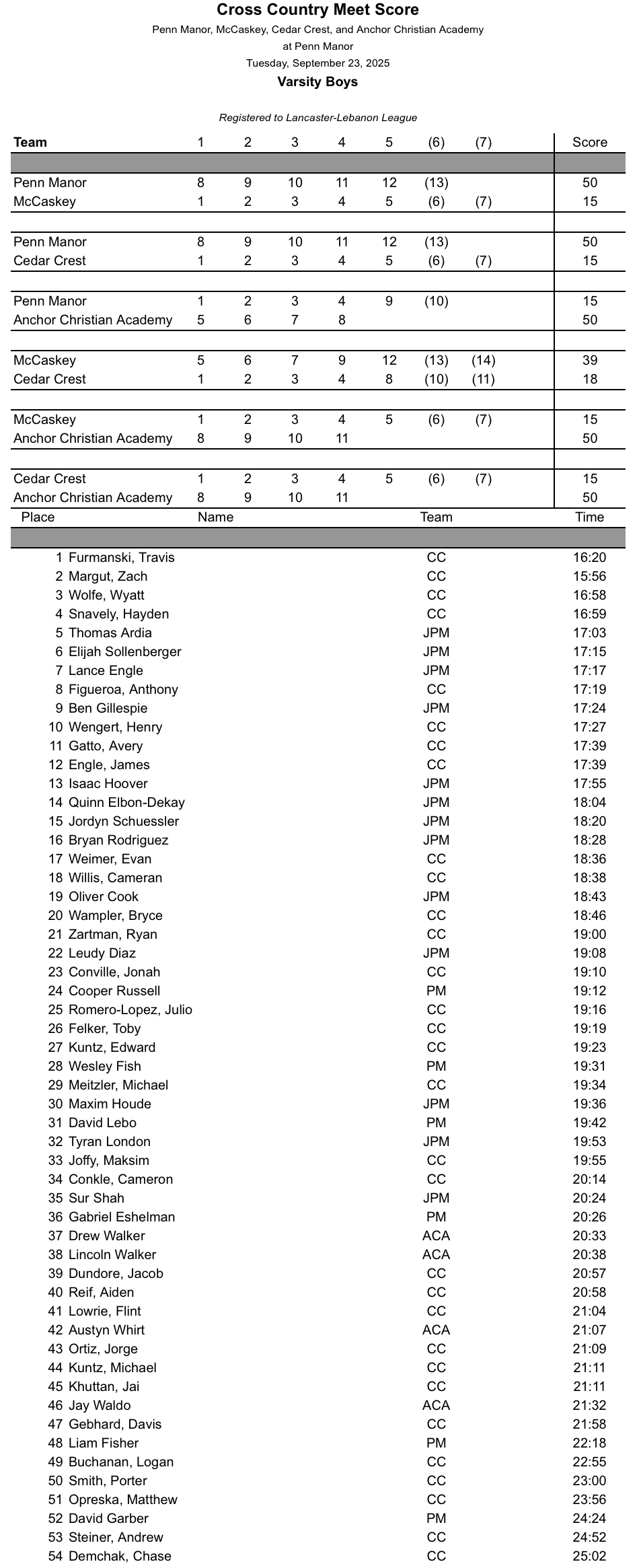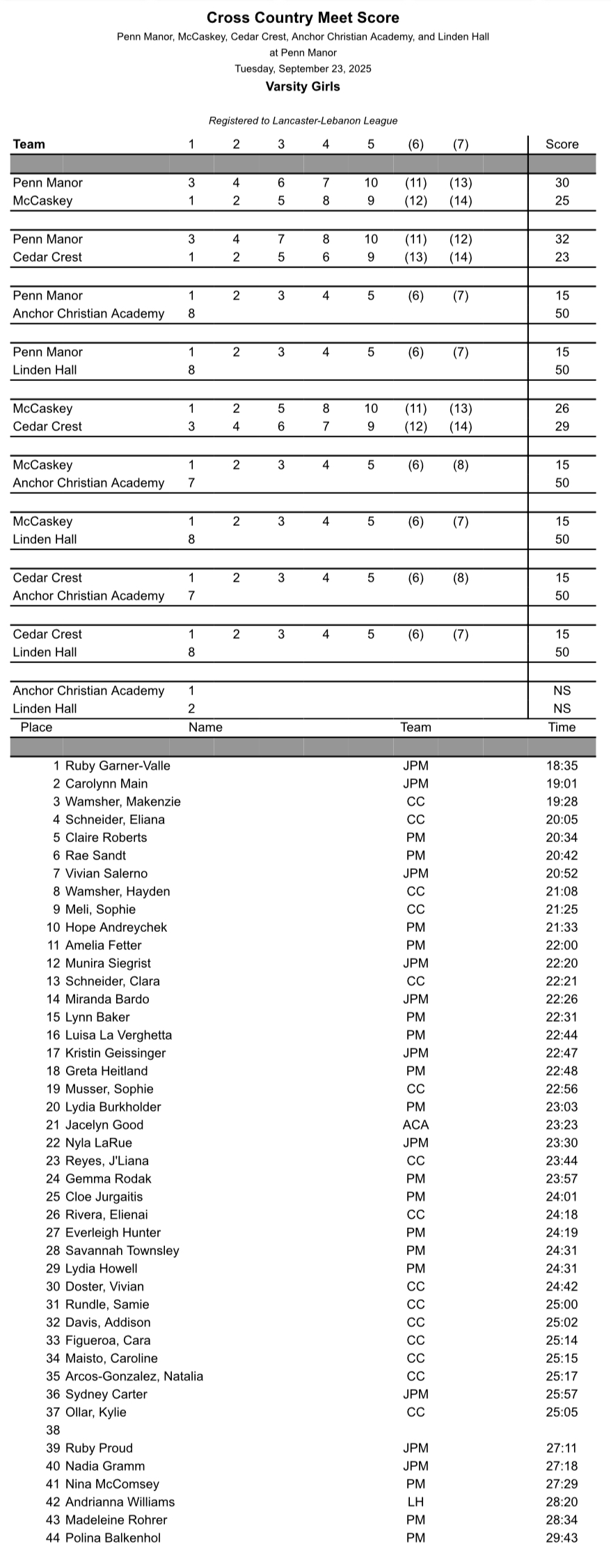 Anchor Christian, Cedar Crest, JP McCaskey, Linden Hall @ Penn Manor – Girls Boys