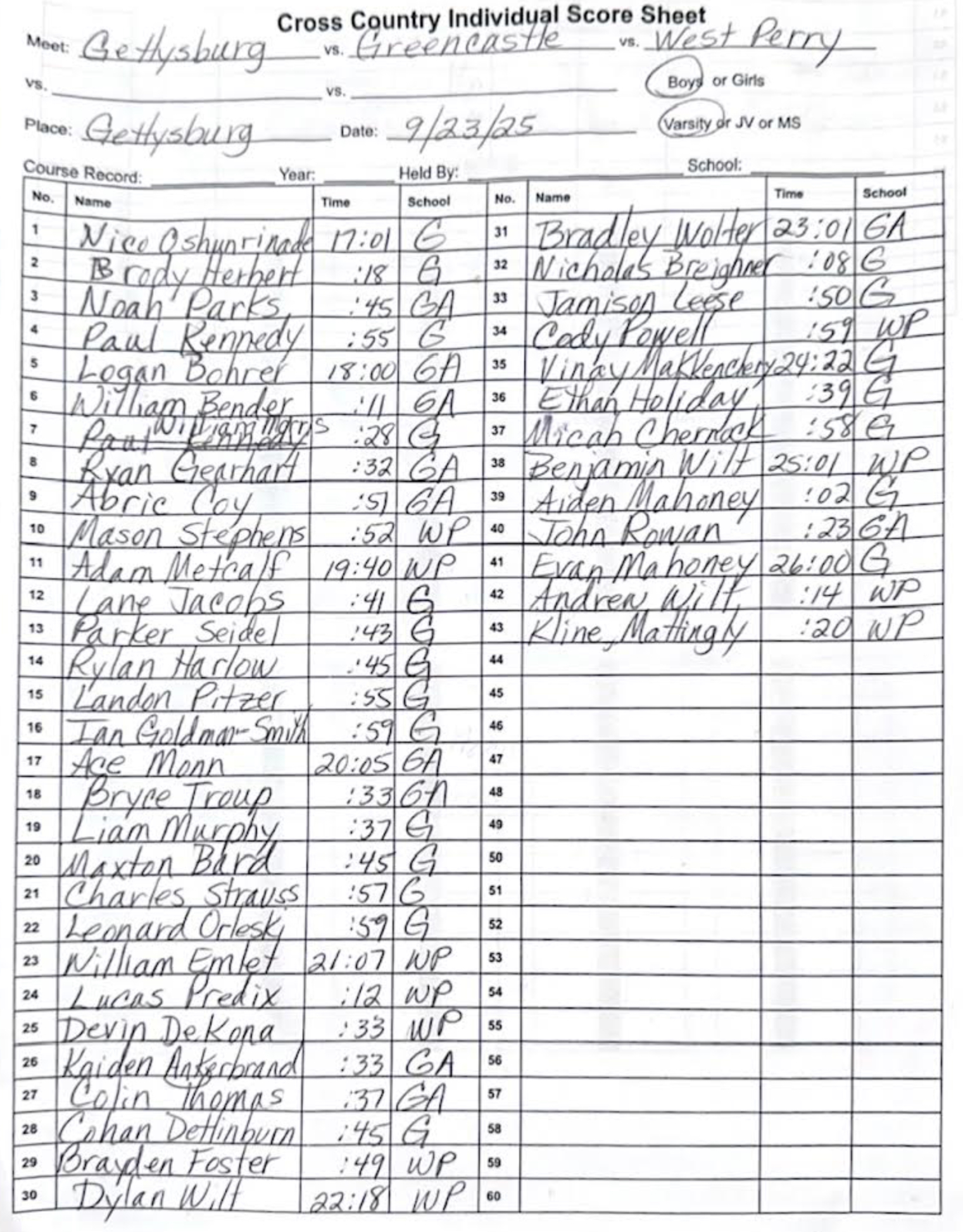 Greencastle and West Perry @ Gettysburg – Girls Boys