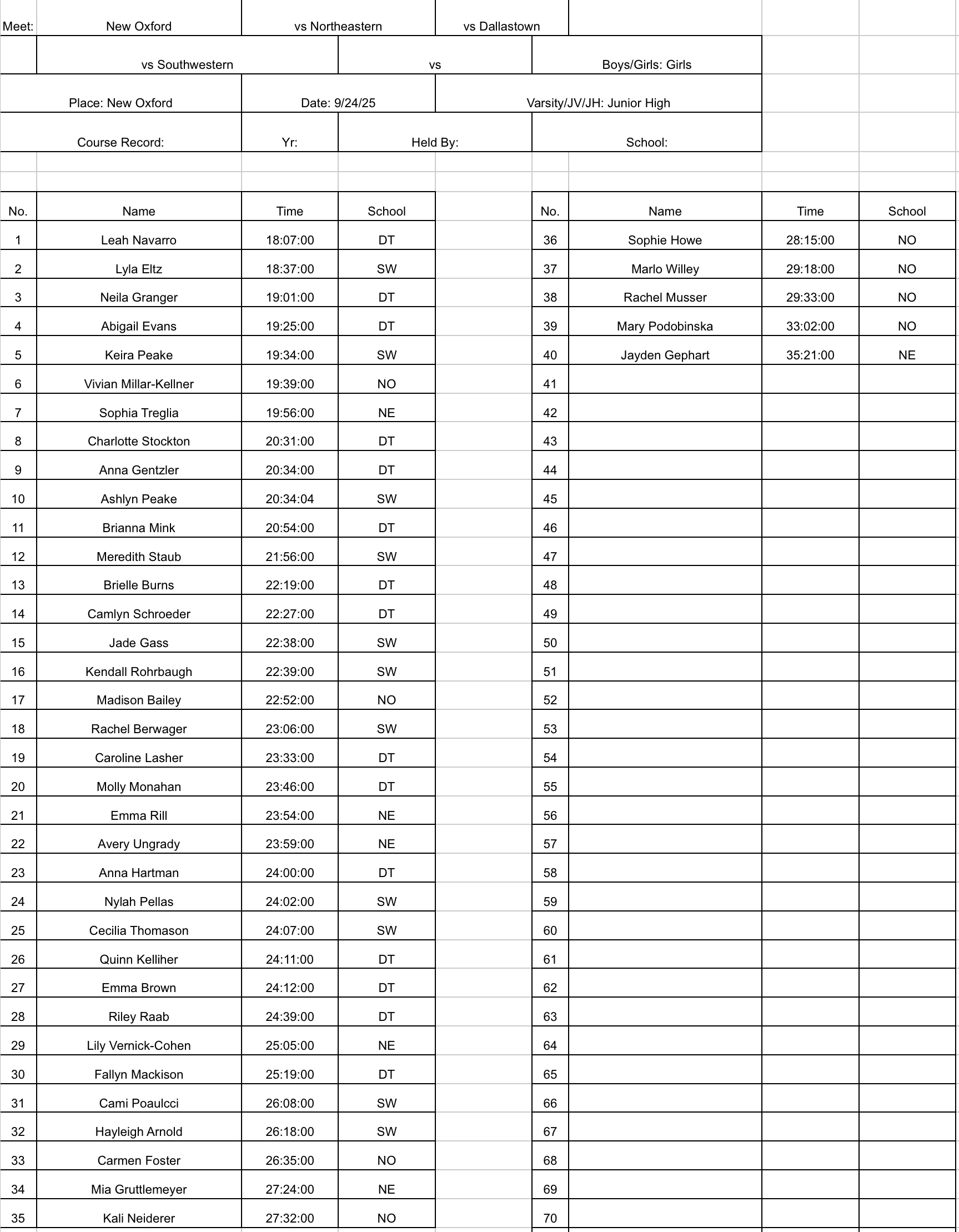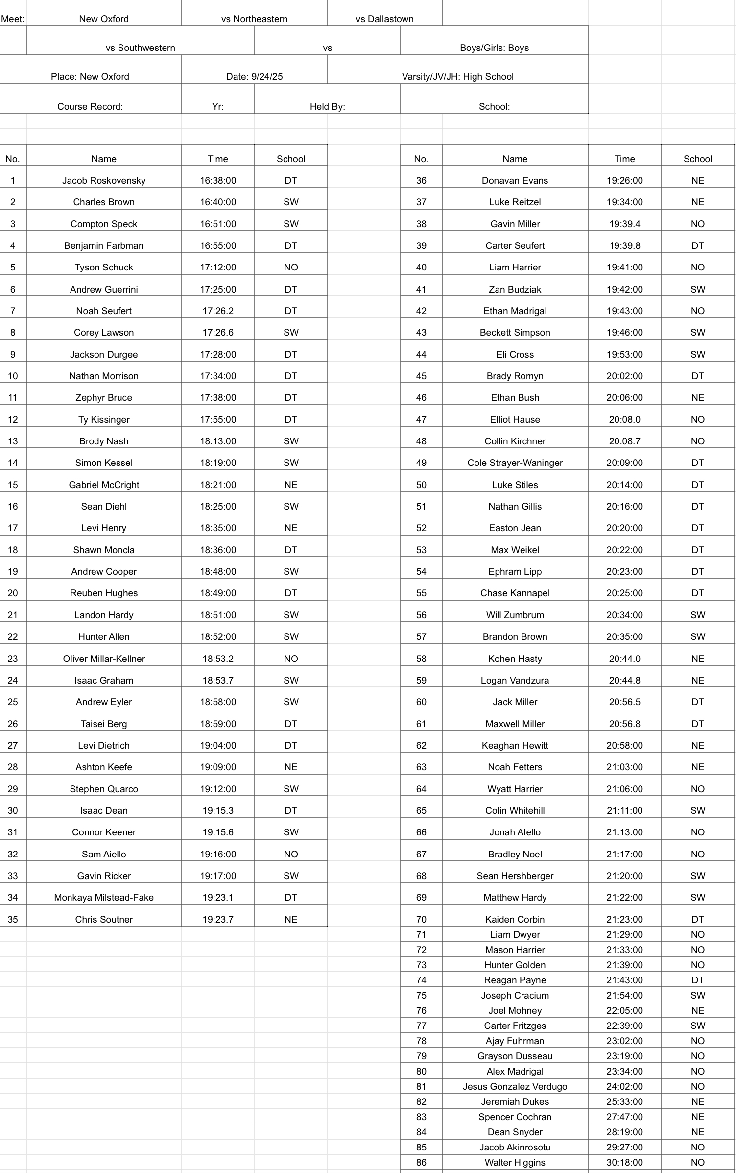 Dallastown, Northeastern, South Western @ New Oxford – Girls Boys Team