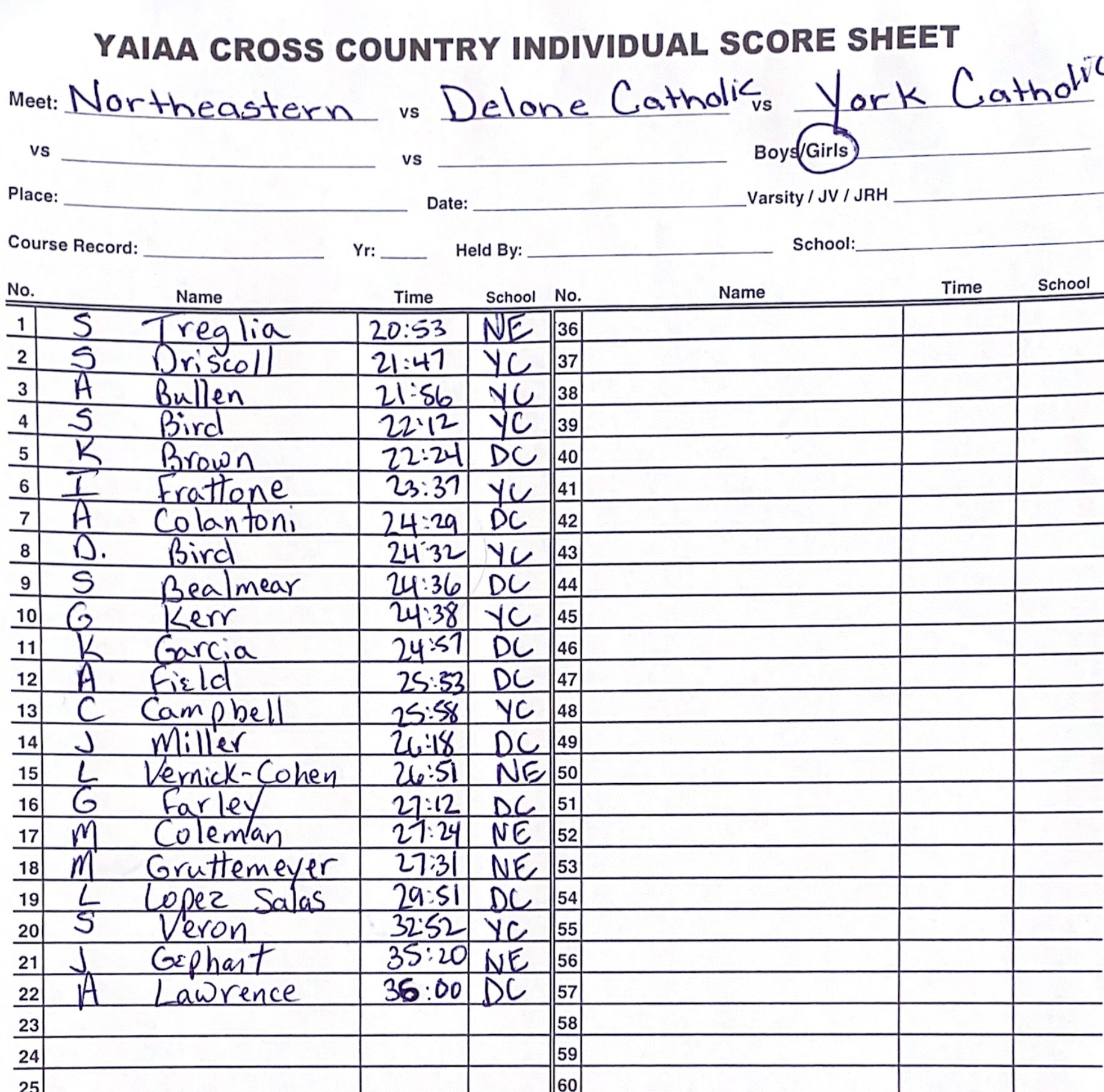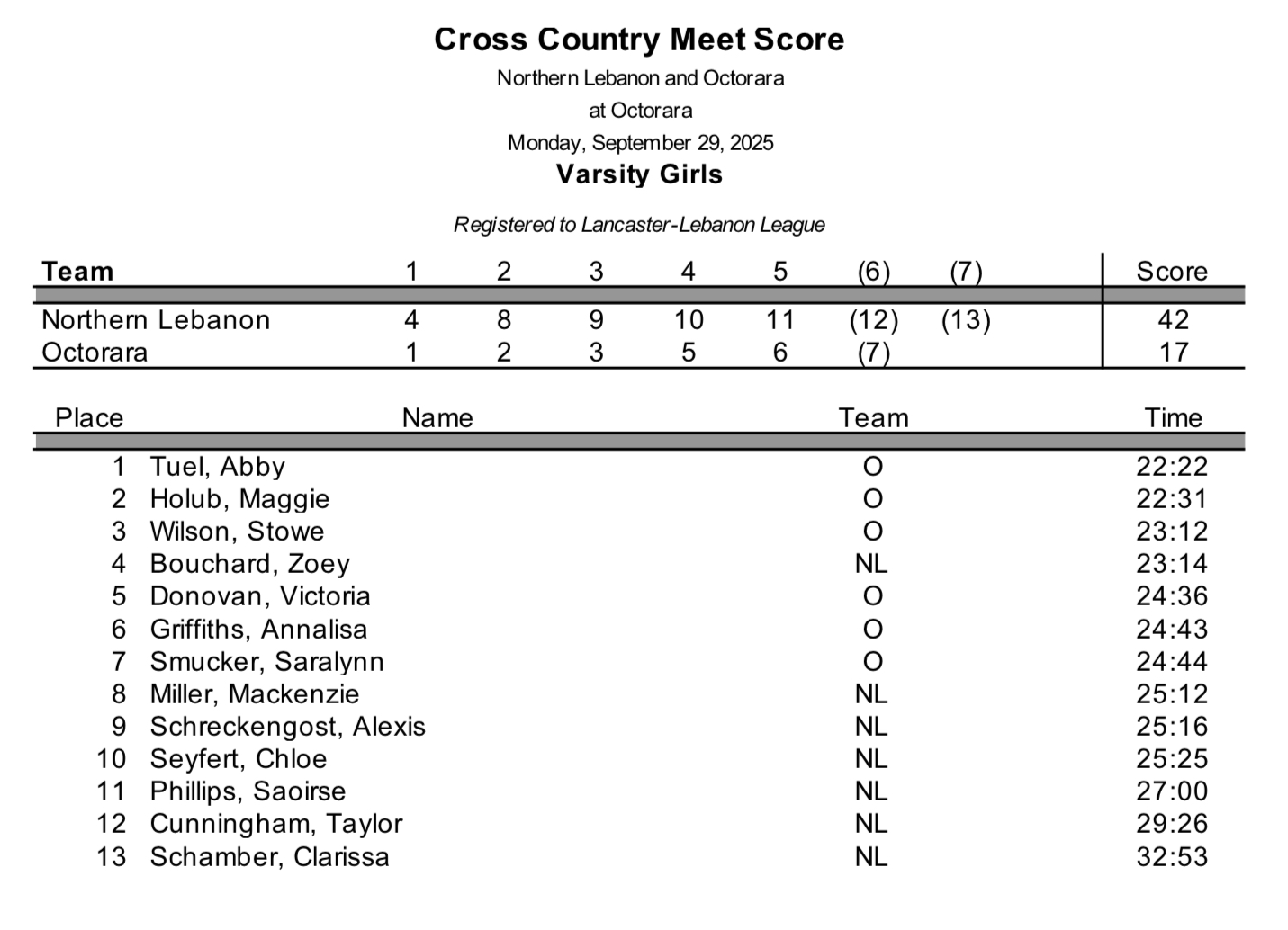 Northern Lebanon @ Octorara – Girls Boys