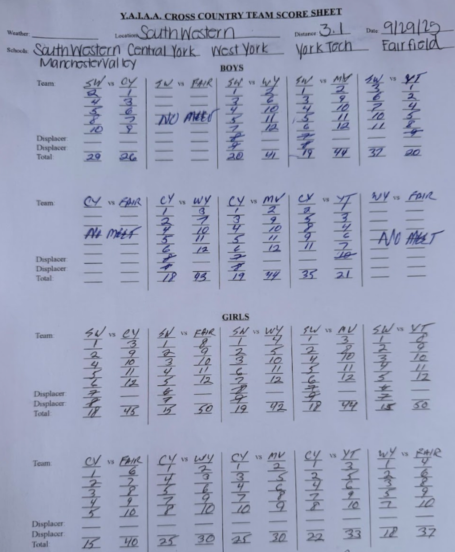 Central York, Fairfield, West York, York Tech, Manchester Valley @ South Western – Girls Boys Team