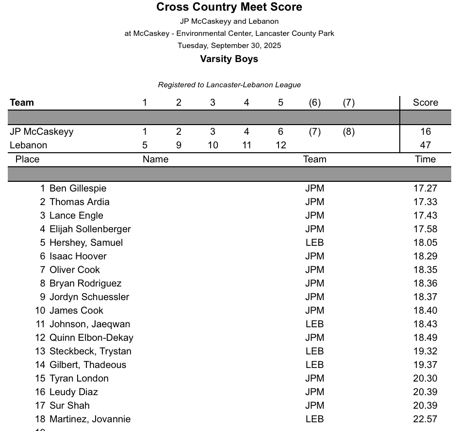 Hershey @ Palmyra – Results