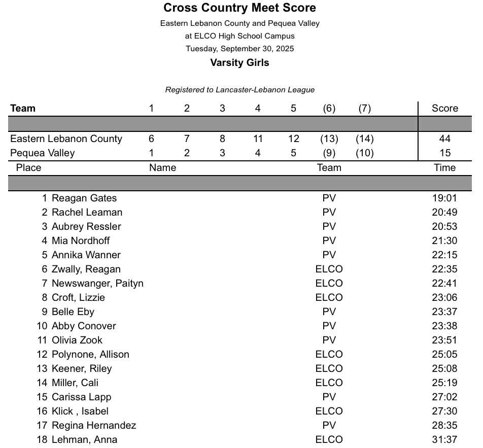 Pequea Valley @ ELCO – Girls Boys
