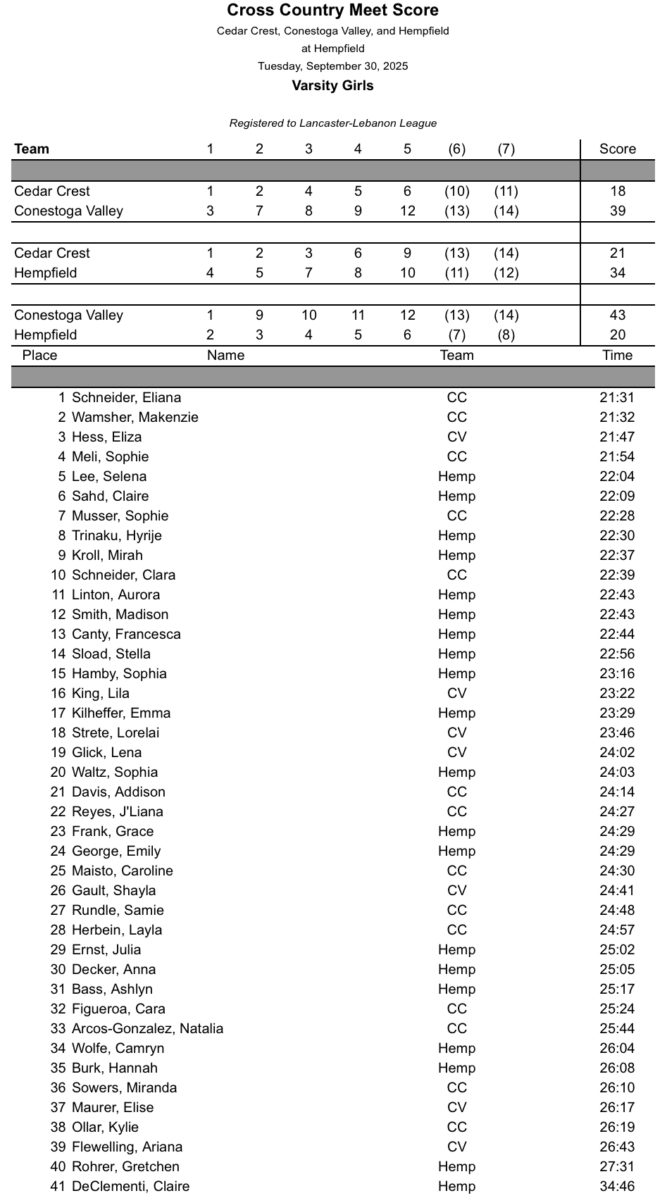 Cedar Crest and Conestoga Valley @ Hempfield – Girls Boys
