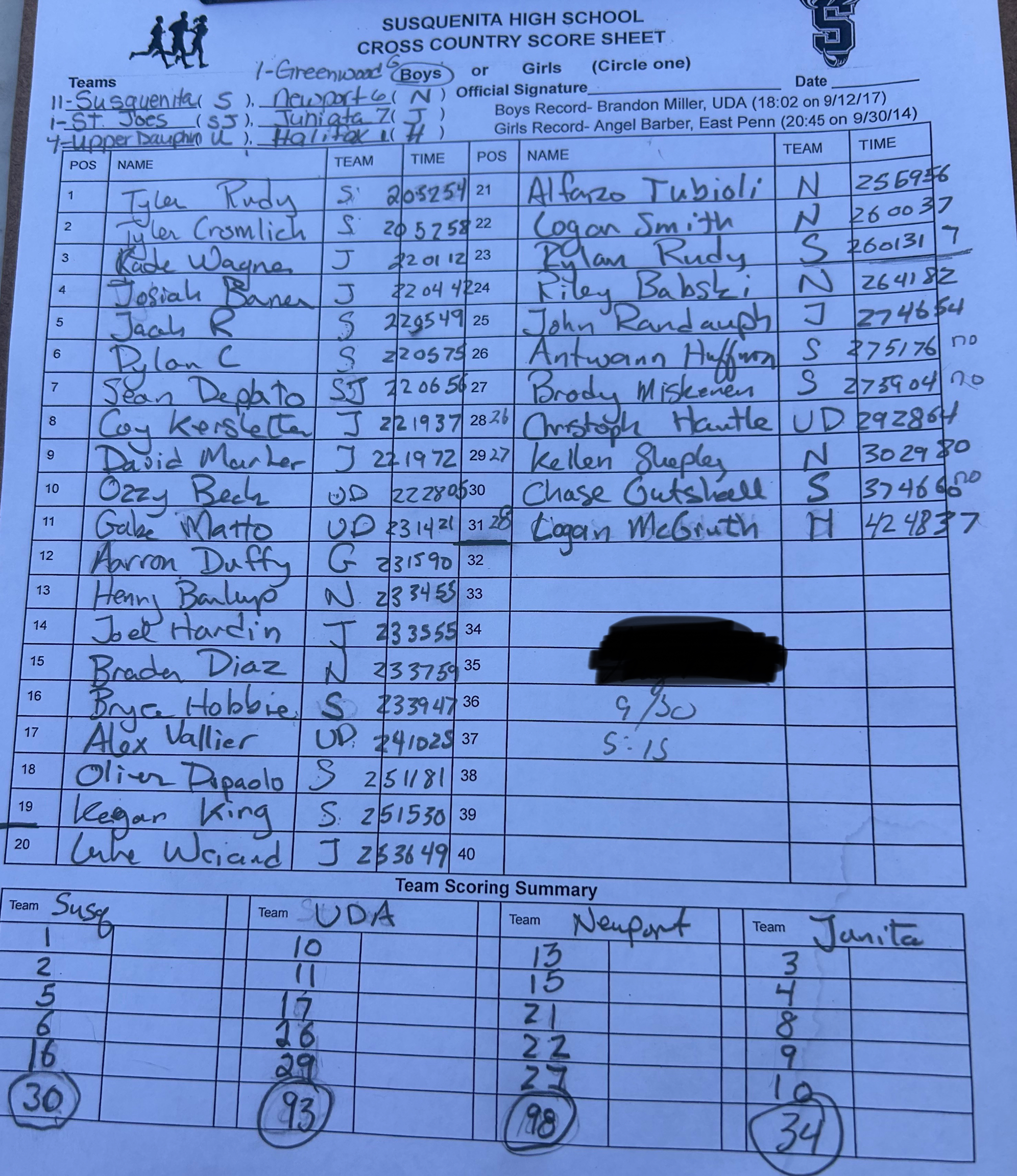 Halifax, Greenwood, Juniata, Newport, Saint Joseph’s Cath, Upper Dauphin @ Susquenita – Girls Boys