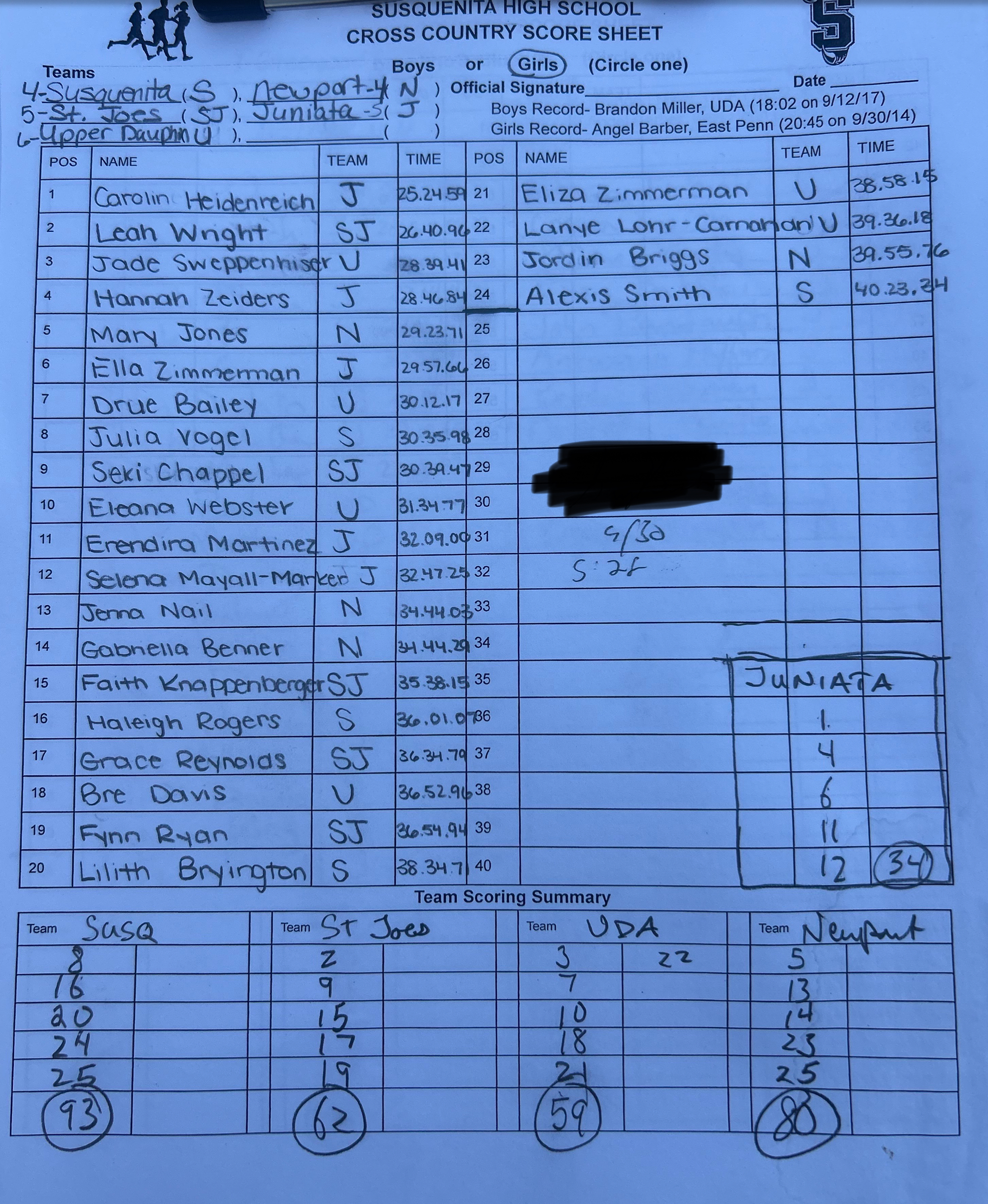 Newport, St. Joseph’s Catholic, Susquenita, Upper Dauphin @ Juniata – Results
