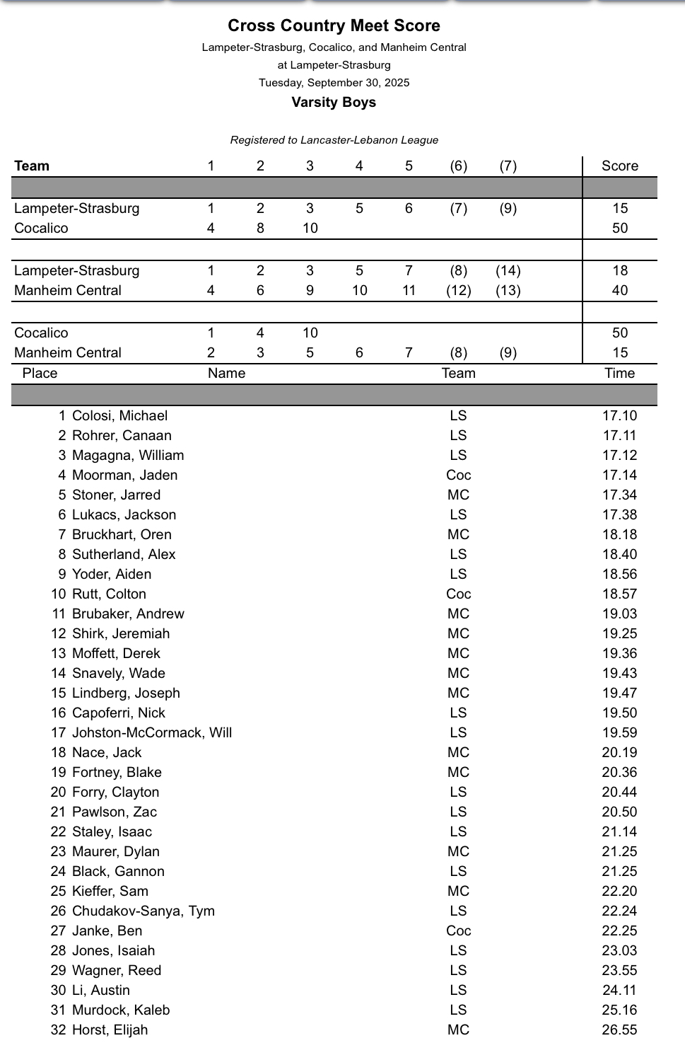 Cocalico and Manheim Central @ Lampeter Strasburg – Girls Boys