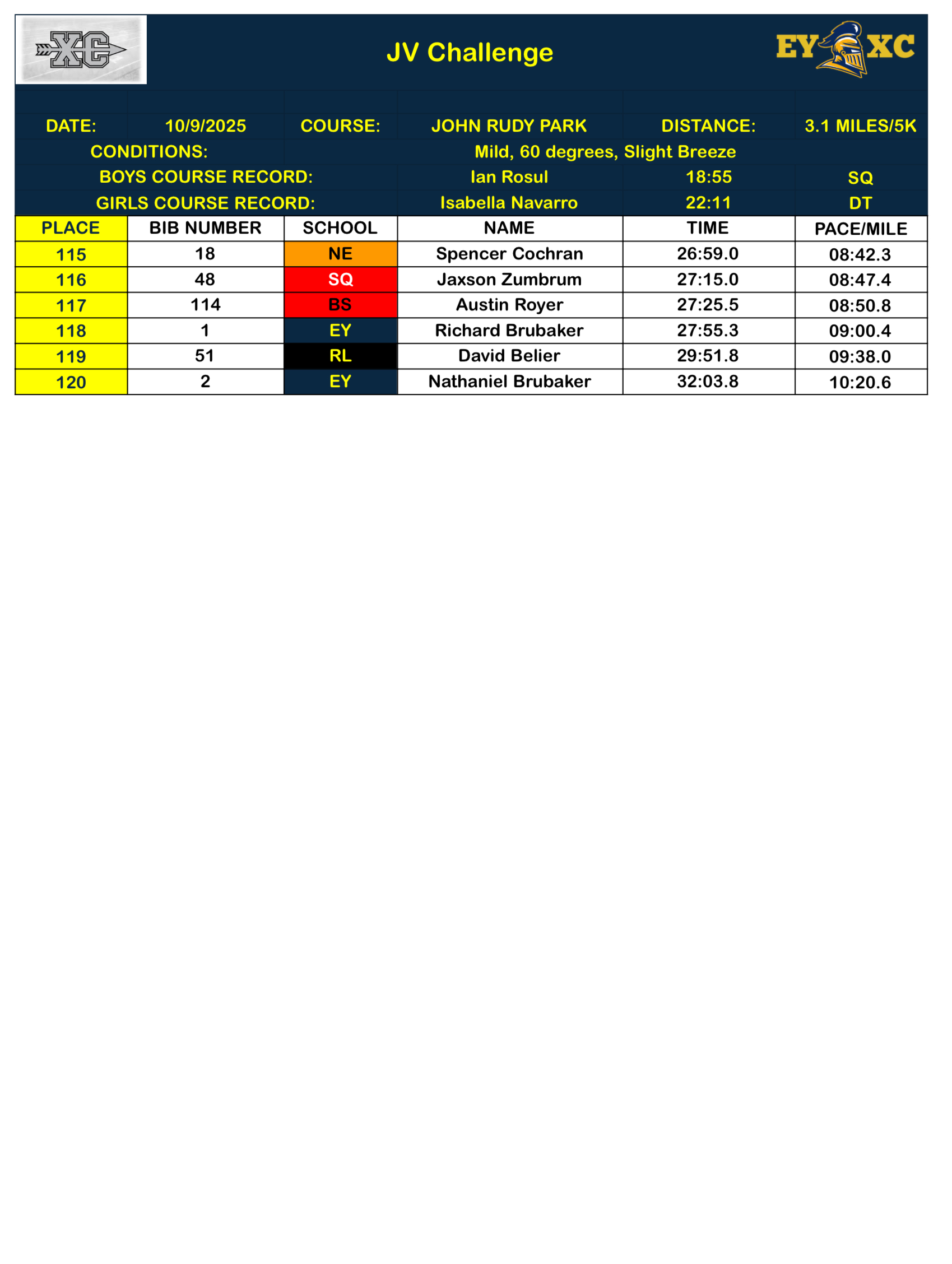 2023 All-CPAR XC Team, presented by Veritcal Raise